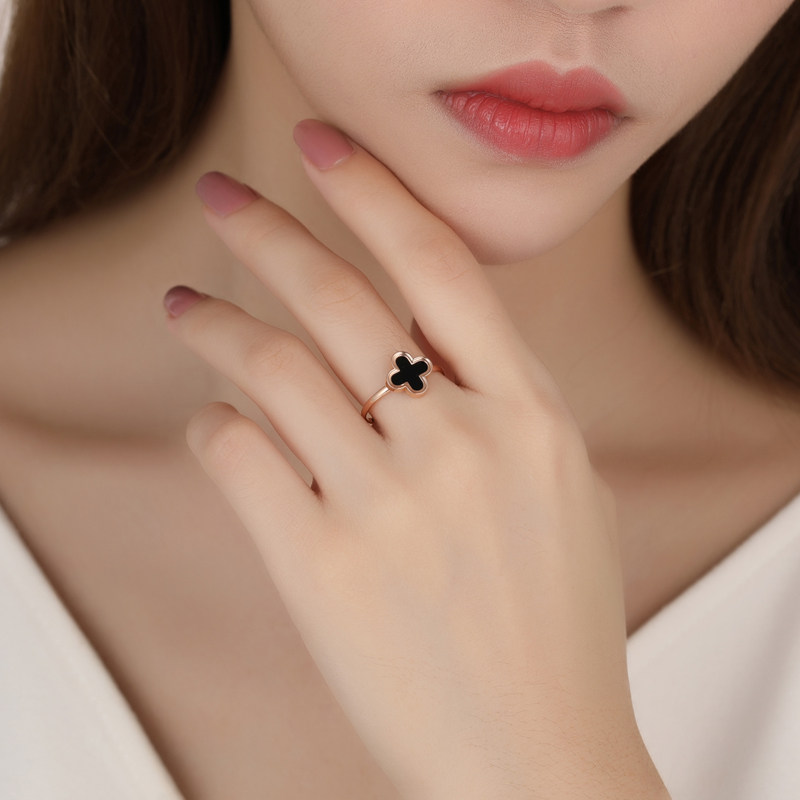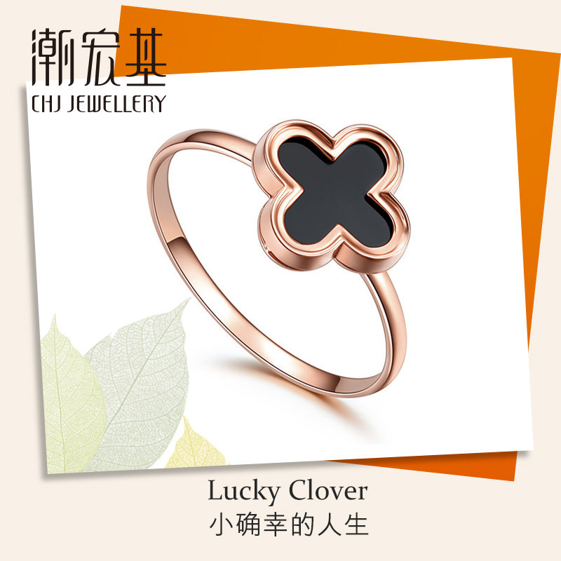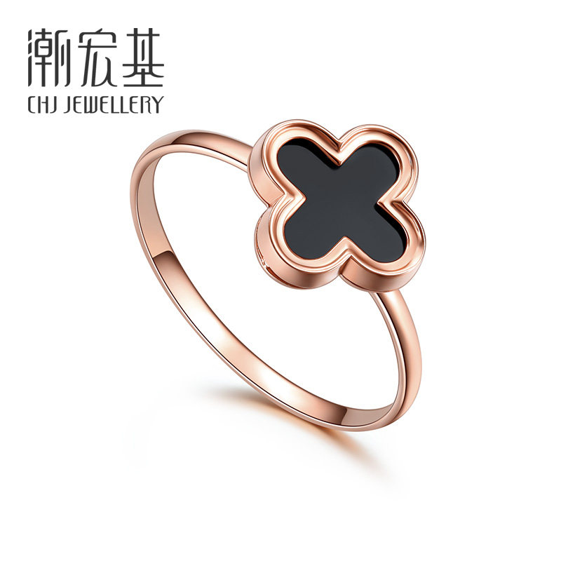 Acer, ювелирное украшение, агатовое золотое кольцо, четырехлистный клевер, золото 750 пробы, розовое золото