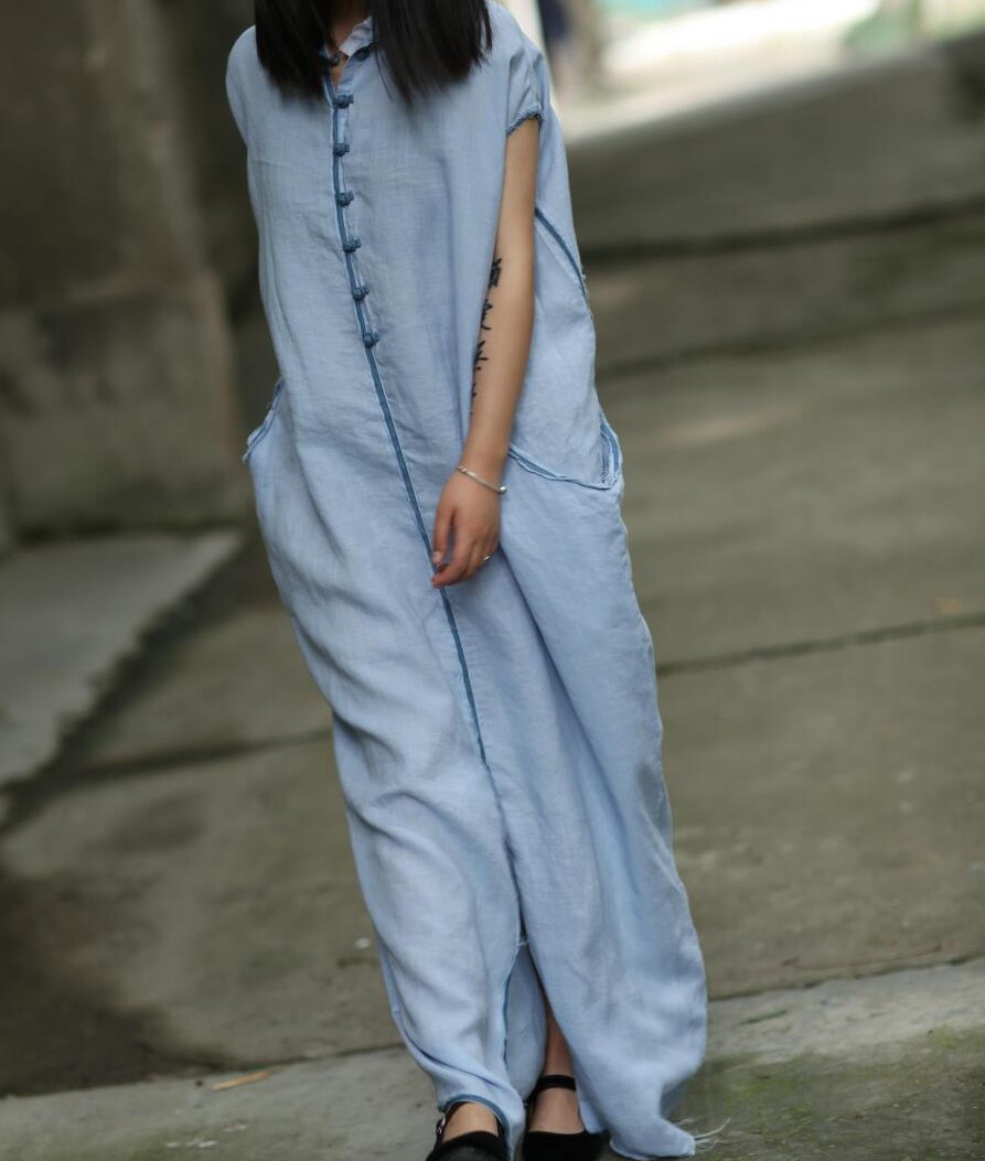 Дизайнерское синее платье, юбка, стиль бохо, свободный крой
