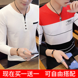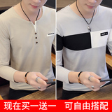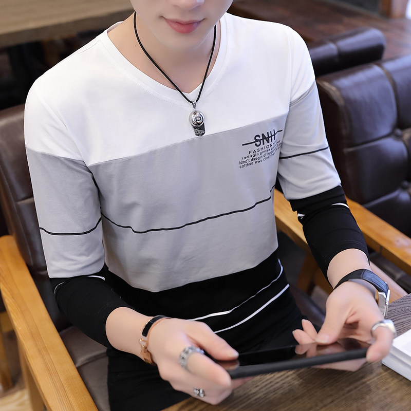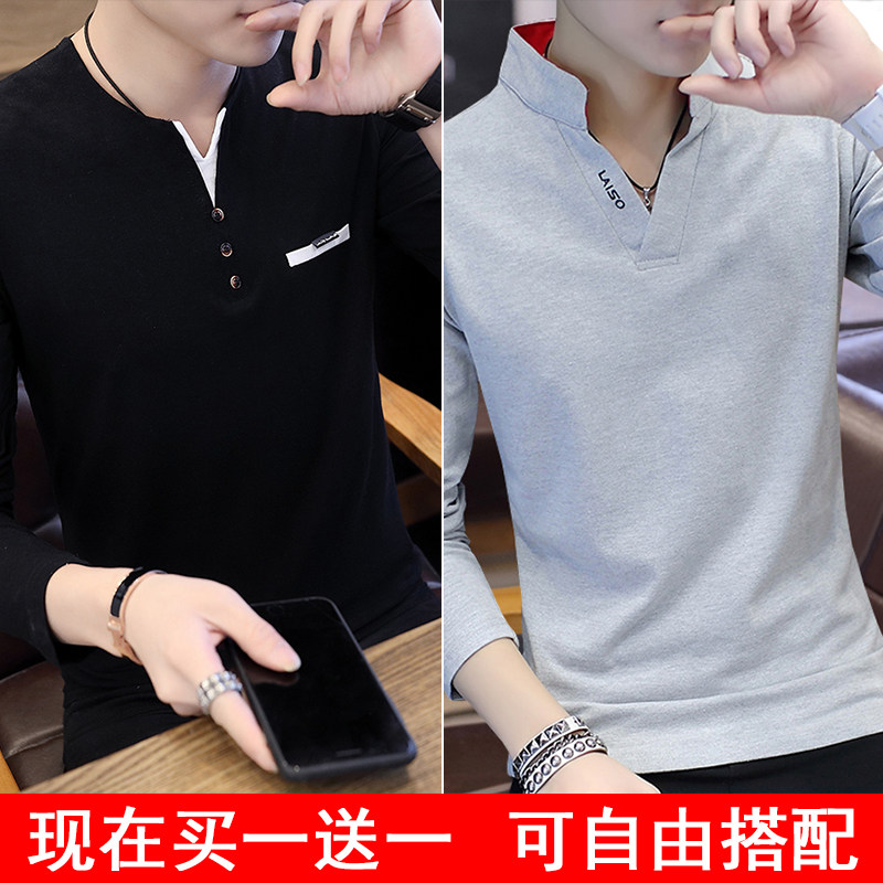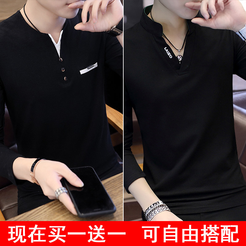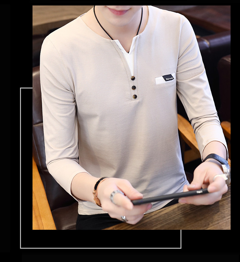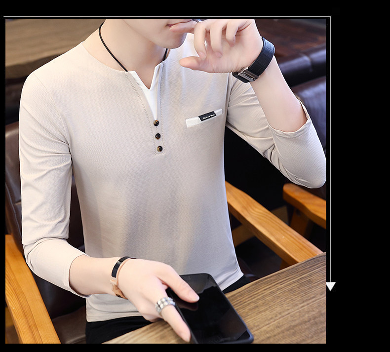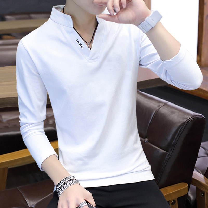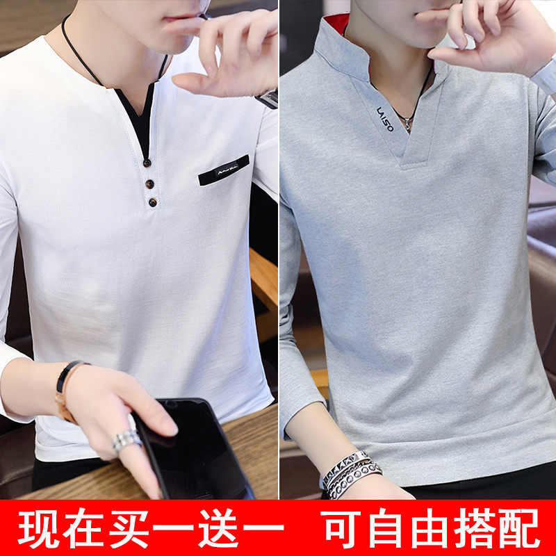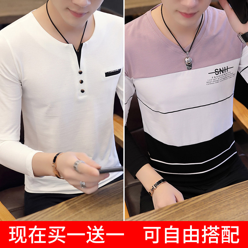 Футболка, мужской трендовый весенний лонгслив, осенняя, в корейском стиле, облегающий крой, V-образный вырез