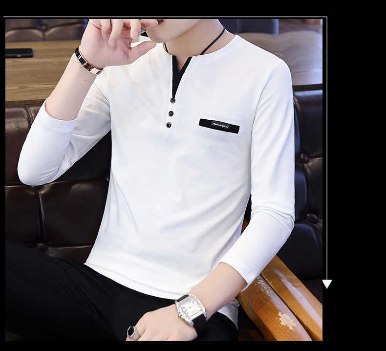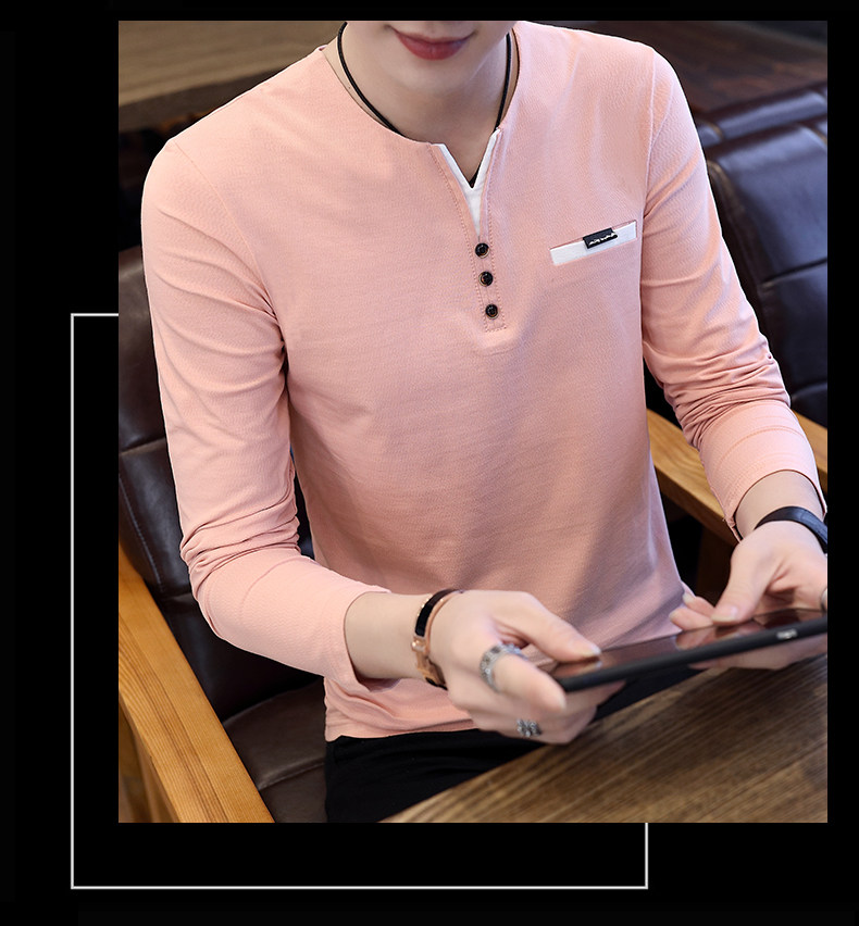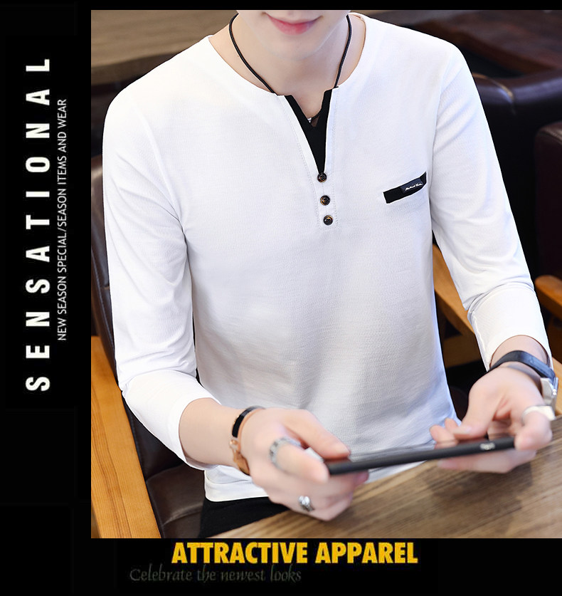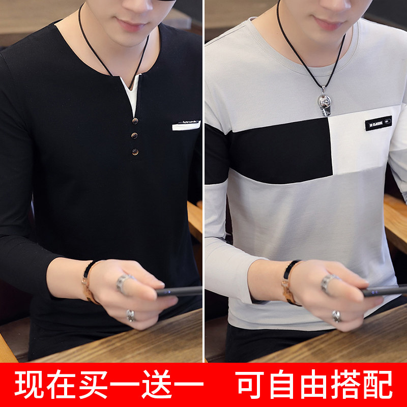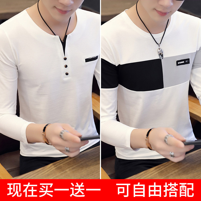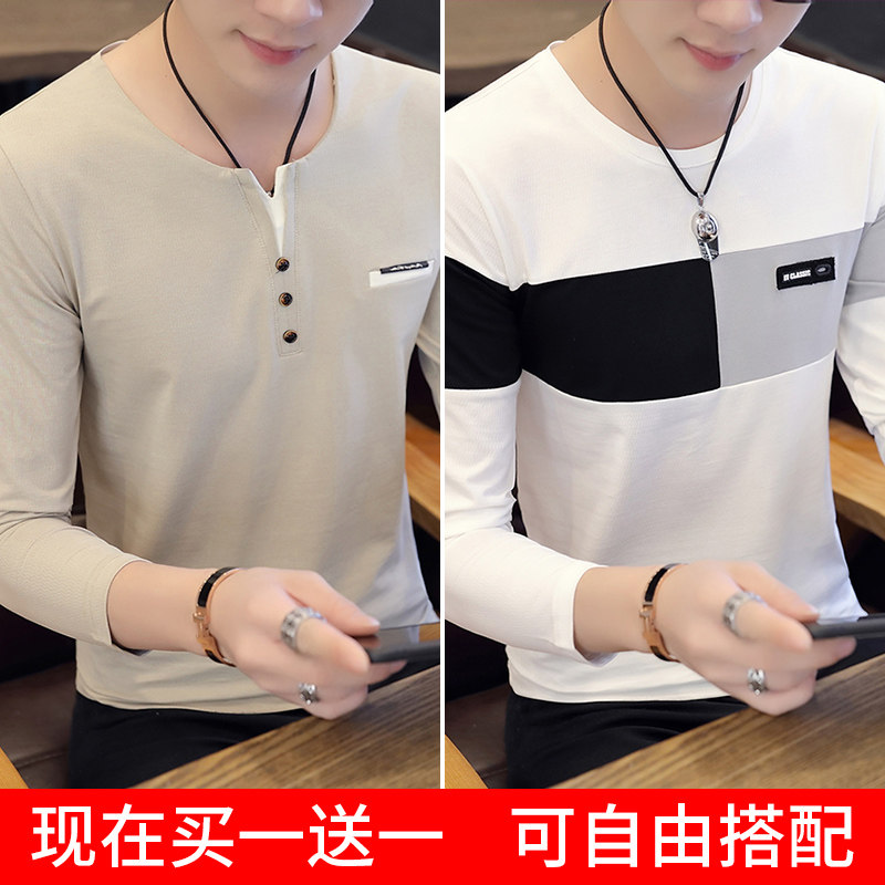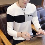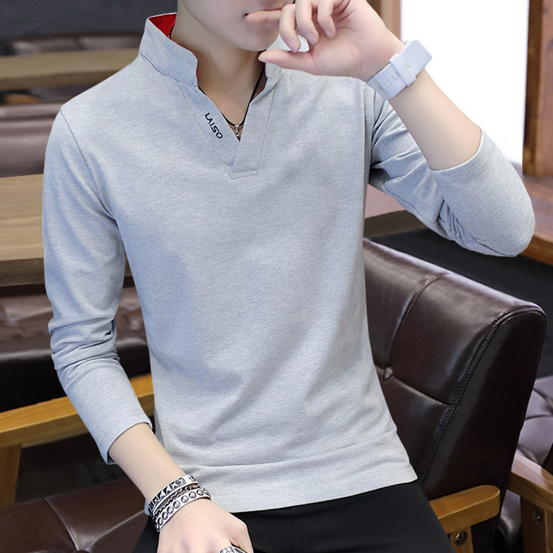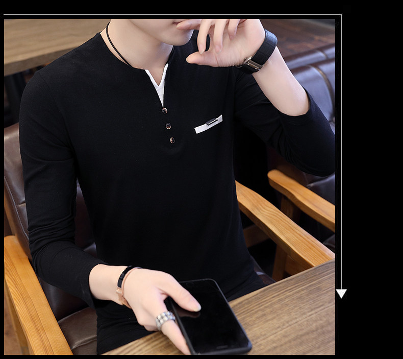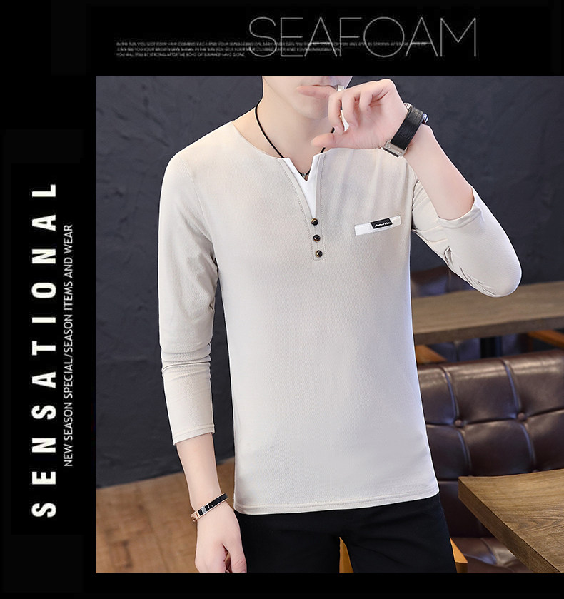 Футболка, мужской трендовый весенний лонгслив, осенняя, в корейском стиле, облегающий крой, V-образный вырез