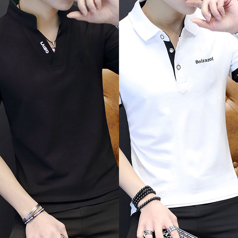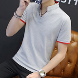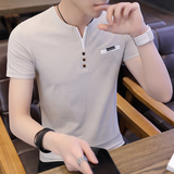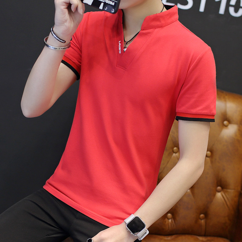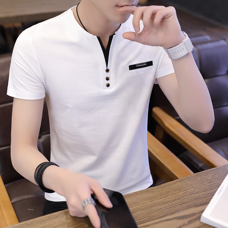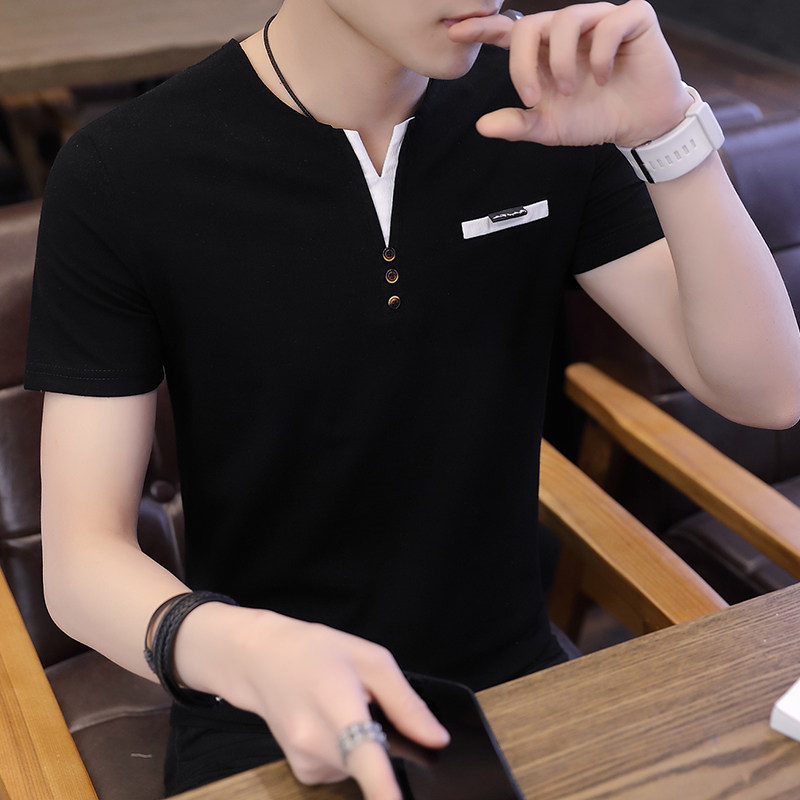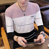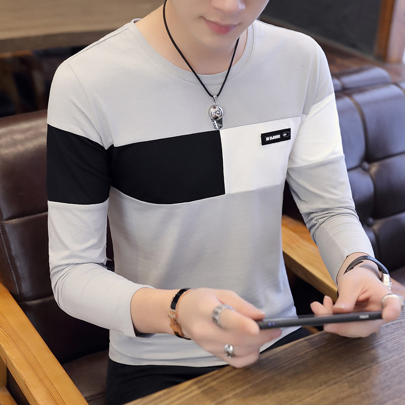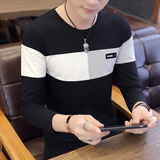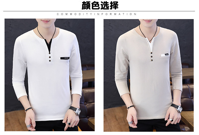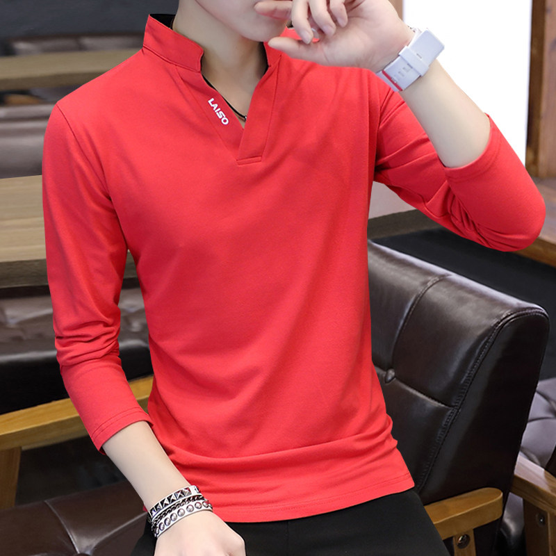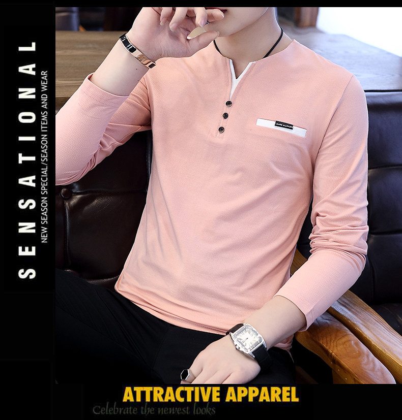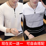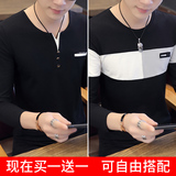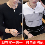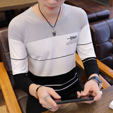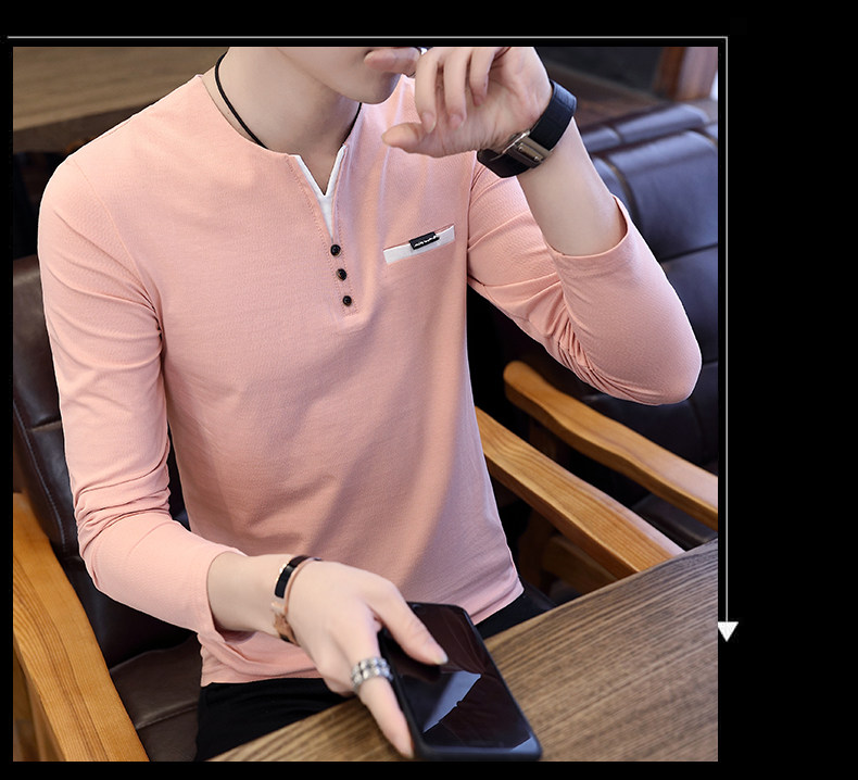 Футболка, мужской трендовый весенний лонгслив, осенняя, в корейском стиле, облегающий крой, V-образный вырез