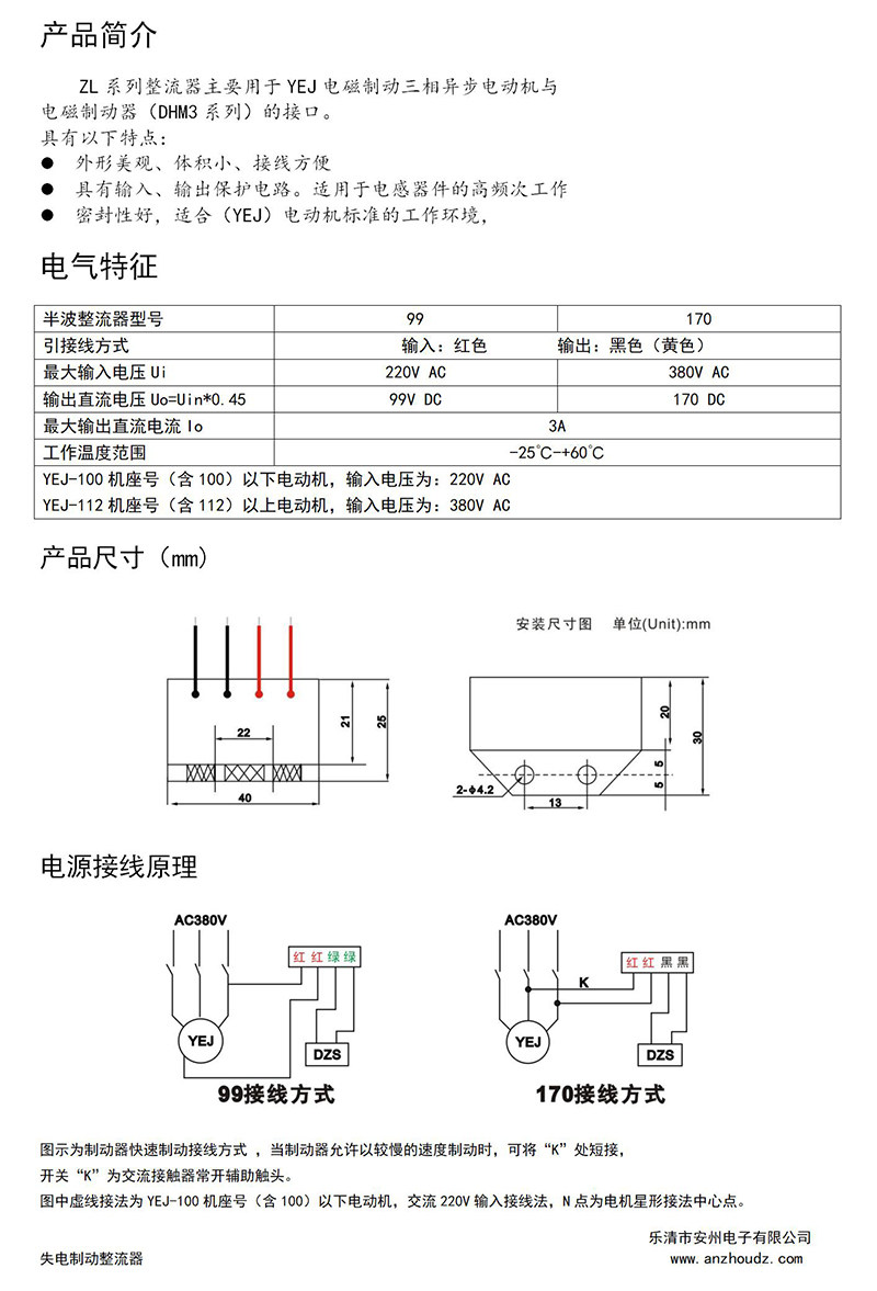 Устройство выпрямителя Anzhou RYK-1 Держатель тормоза 99V170V Питания тормозного выпрямителя