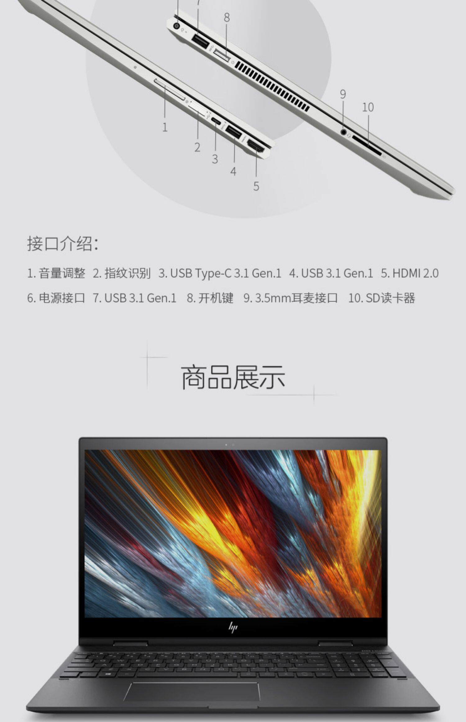 HP/惠普 Легкий портативный ноутбук, x360, 15.6 дюймов, intel core i7, 2 в 1, бизнес-версия, официальный флагманский магазин