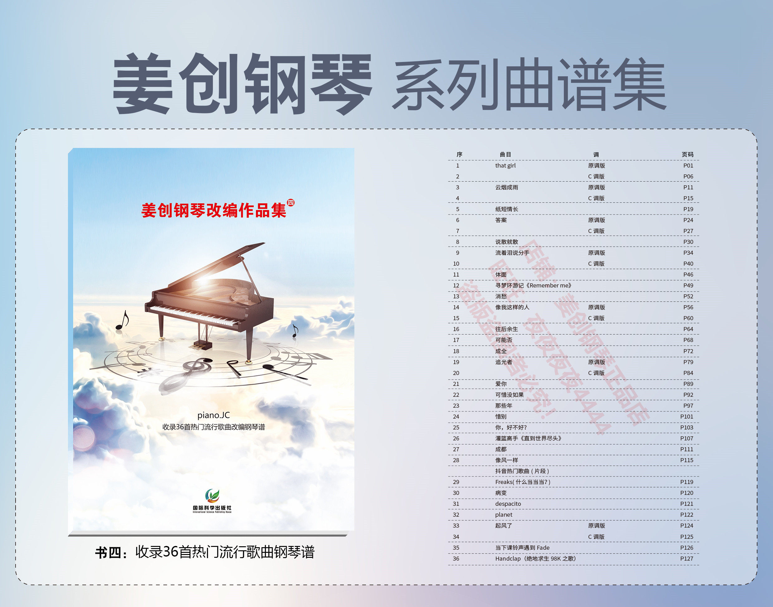 姜创钢琴 Адаптированная коллекция 4 фортепиано с партиной фортепиано популярные песни Douyin Piano Scape That Girl