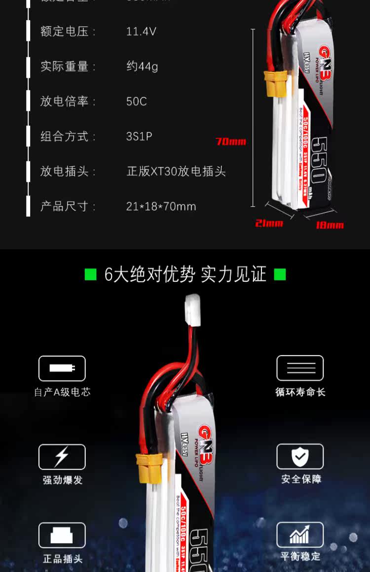 Высокоэнергетический GNB 550MAH 3S 11.4V 50C HV Модельный самолет FPV Power Litthium Battery