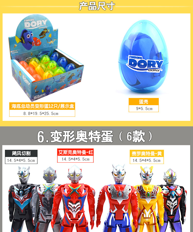 | Классификация цветов: | 6 Семейство Ультра Трансформированные яйца (установка яичной оболочки), Восемь динозавров (сумка OPP), Четыре преобразованные яйца -пауки (коробка) два случайных распределения, Бэтмен против Супермена 4 (установка яичной оболочки), 4 яйца деформации семейства динозавров (установка яичной оболочки), Открыто яйцо [2 подарочных коробки] 0902, Открыто яйцо [4 подарочных коробки] 0904, 7 Q версия Ultraman, 5 Q Версия Altman+2 монстра |