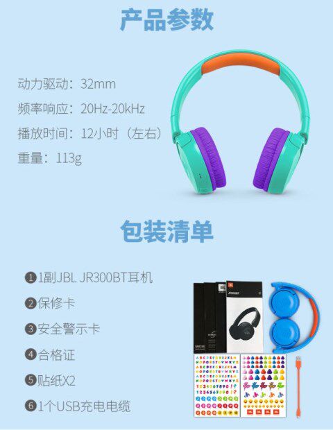 JBL JR300BT Детская голова в беспроводной Bluetooth Low Decibel Студенческие наушники мультфильм обучение с пшеницей