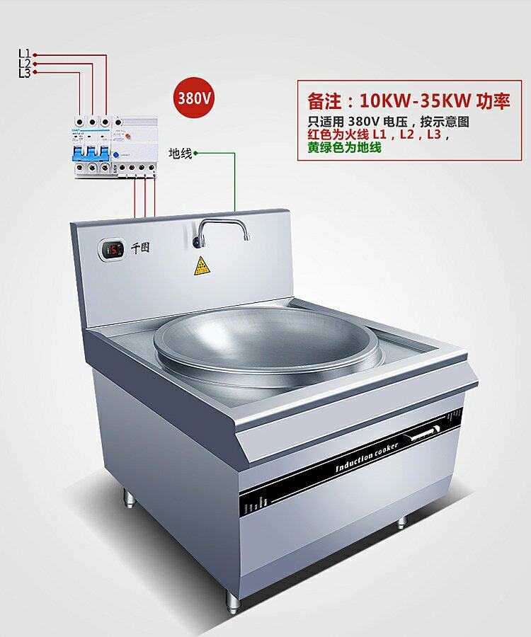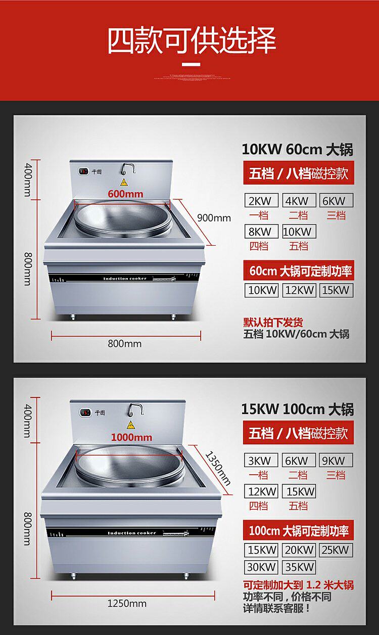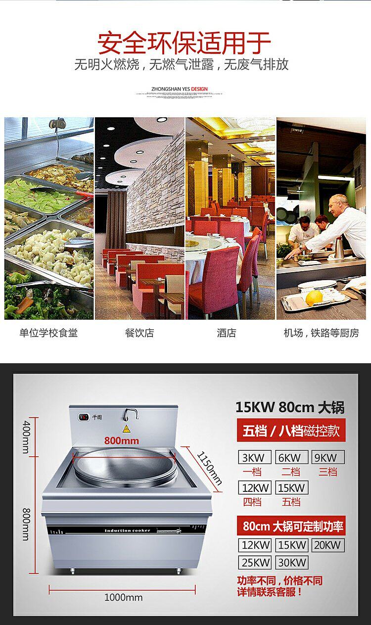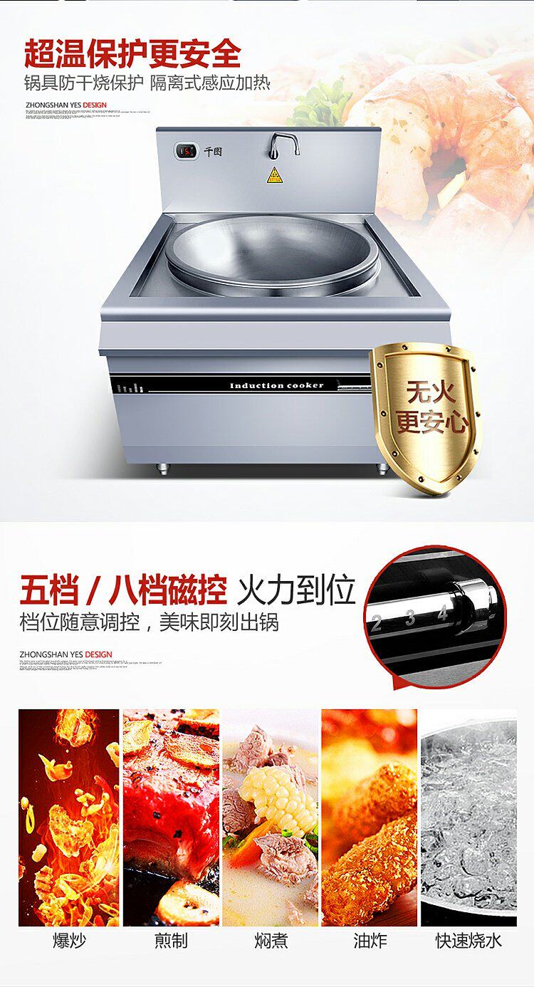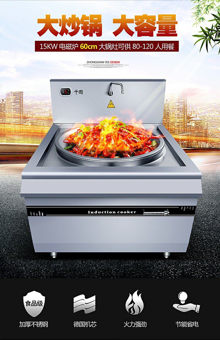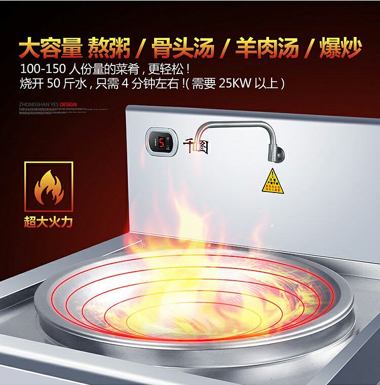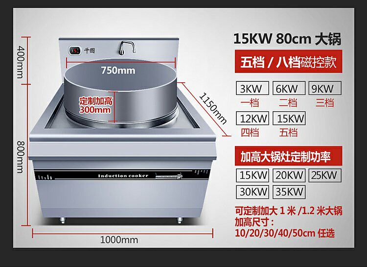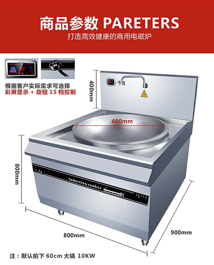 Коммерческая индукционная плита Большая горсовая плита 8000 Вт с высокой мощностью вогнутая поверхность варенованная печь с лапшой 10/20 кВт петь кафетерия большая печь Pot Power Furnace