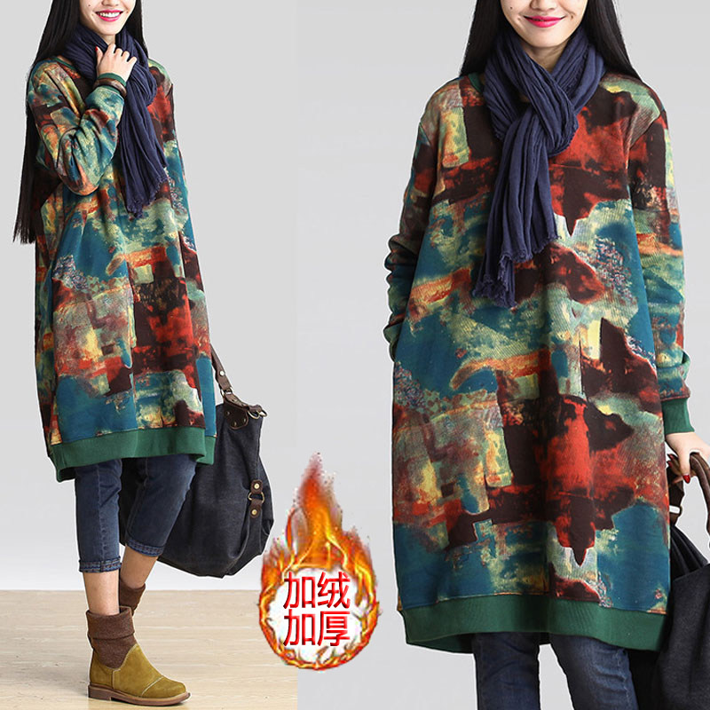 Демисезонная длинная толстовка, утепленный лонгслив, хлопковое платье, в корейском стиле, средней длины, оверсайз