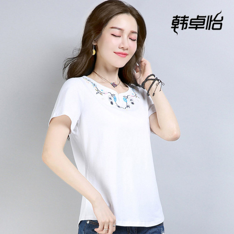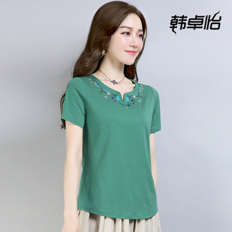 Tide, хлопковая футболка с коротким рукавом, летняя одежда для матери, коллекция 2022, в корейском стиле, свободный крой, с вышивкой