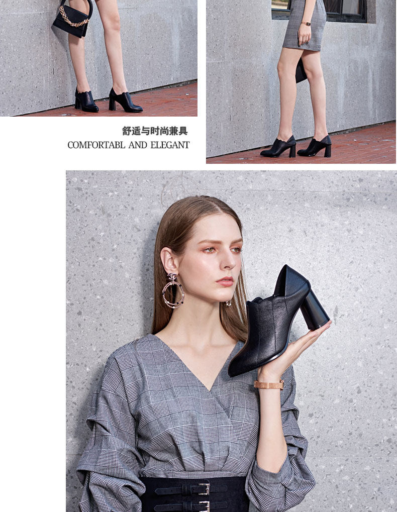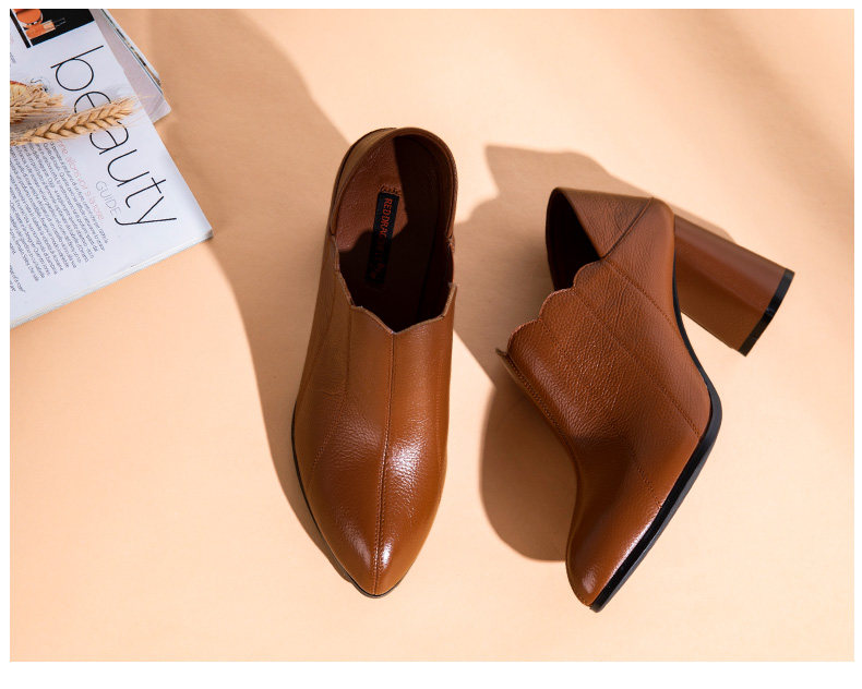 Высокая обувь с заостренным носом для кожаной обуви, из натуральной кожи