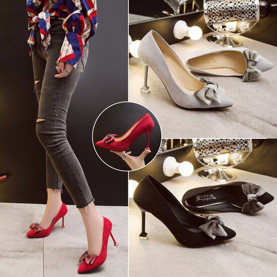 Модные туфли на высоком каблуке с бантиком, туфли-шпильки с низким вырезом, европейский стиль, 2018, тренд сезона