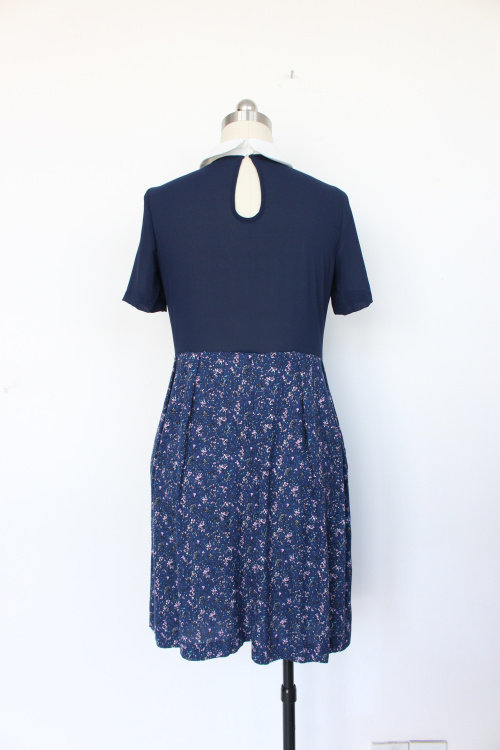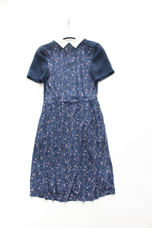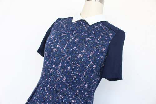 80172 Молодежный колледж возраст, уменьшающий стиль, отворотный лацкат маленький цветочный сплайсинг с коротким рукавом назад маленькое прозрачное платье