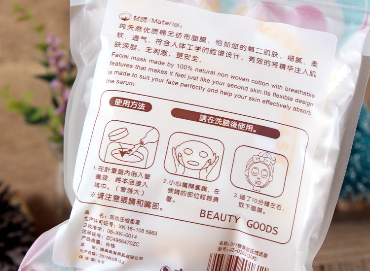 Эта сжатая маска изготовлена из качества воды, не переночной ткани, производимой чистым натуральным деревянным волокном. Она не раздражает, безопасна, близко к лицу и хорошей кожи -дружеской