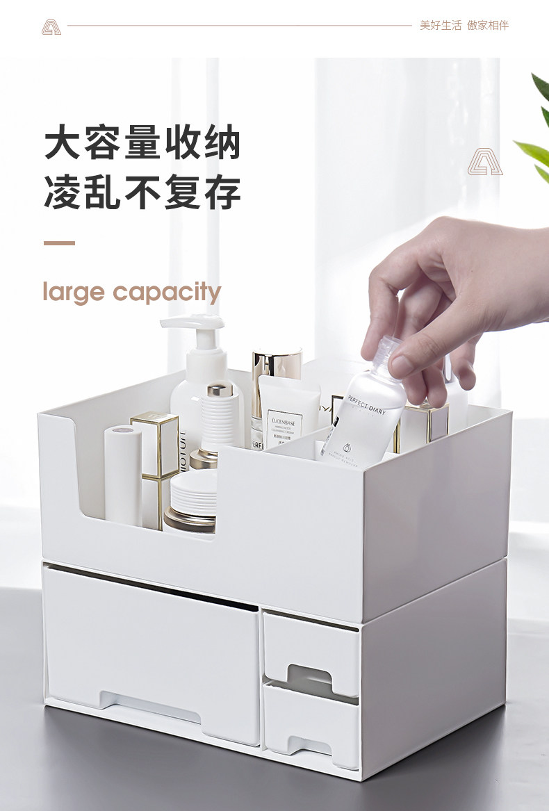 Косметическая настольная вместительная и большая коробка для хранения, помада для ухода за кожей, кисть, туалетный столик