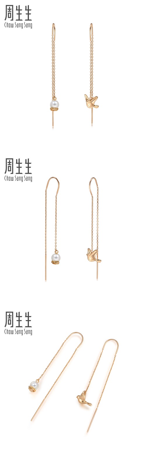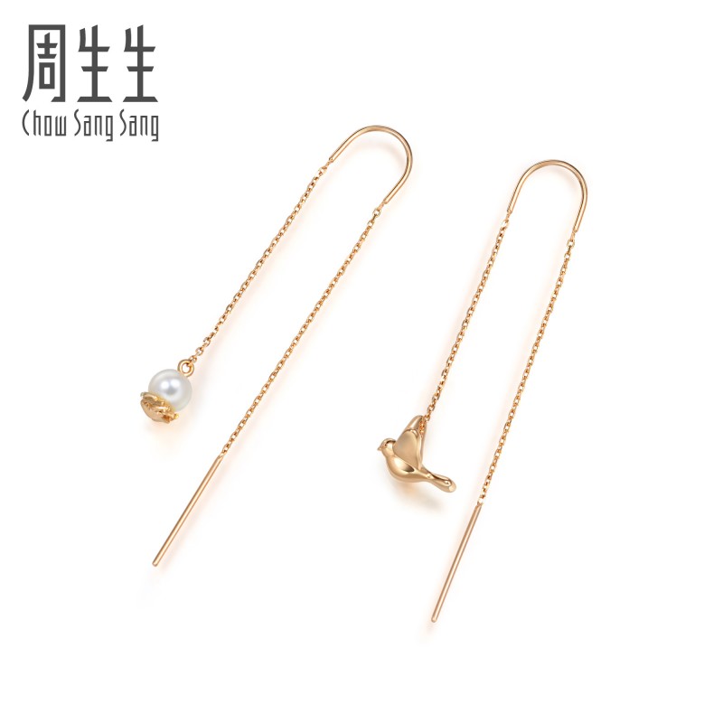 周生生 Золотые серьги из жемчуга, 18 карат, розовое золото
