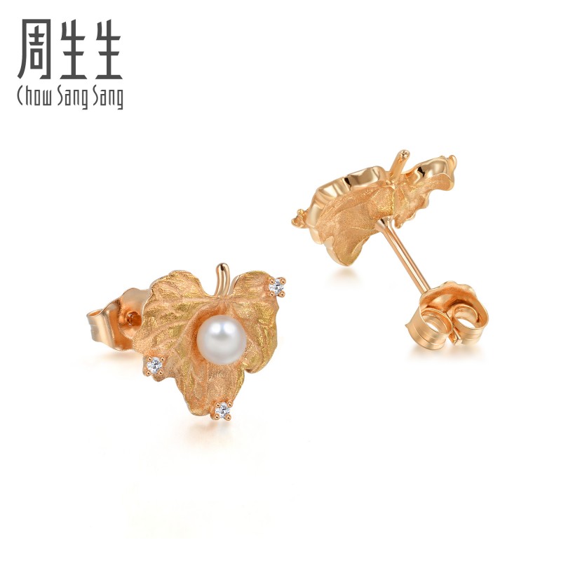 周生生 Золотые брендовые серьги из жемчуга, 18 карат, розовое золото