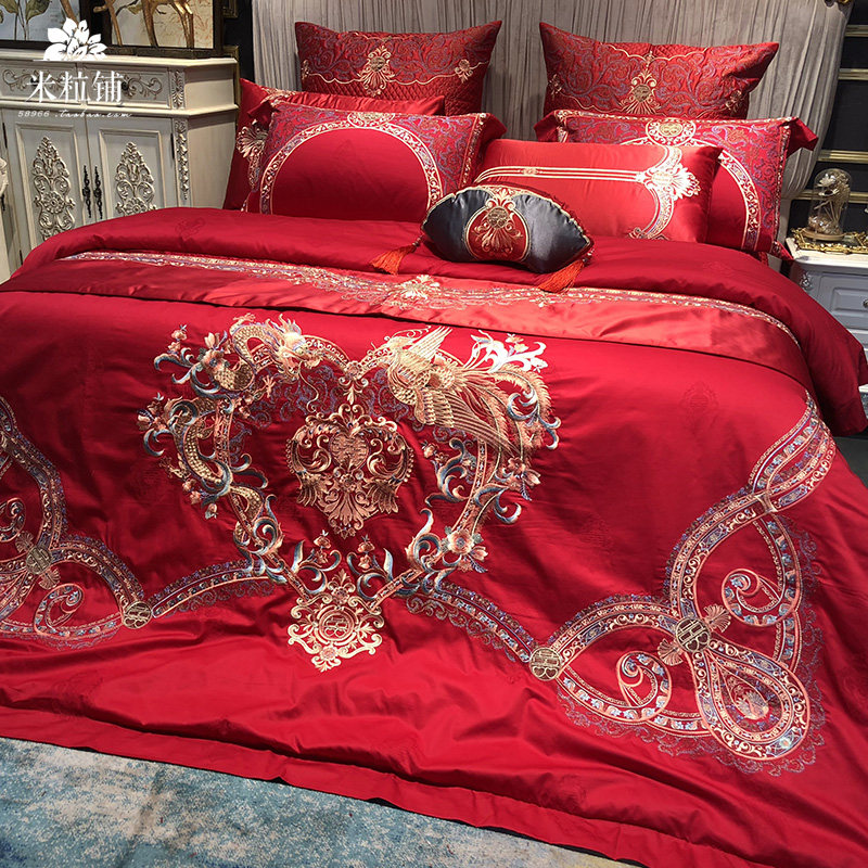 Элитный хлопковый комплект, хлопковое покрывало, 4 предмета, с вышивкой, постельные принадлежности