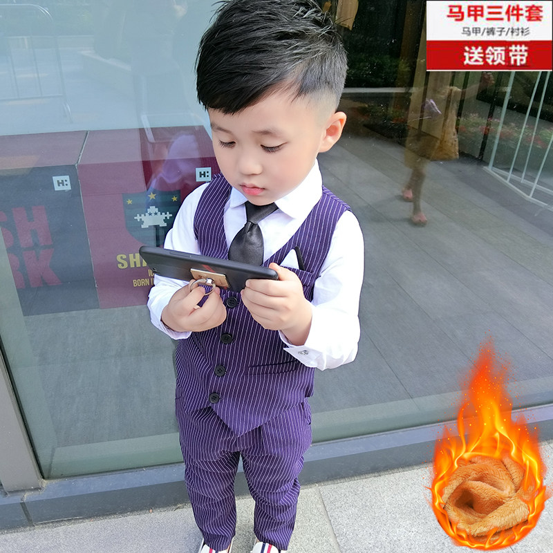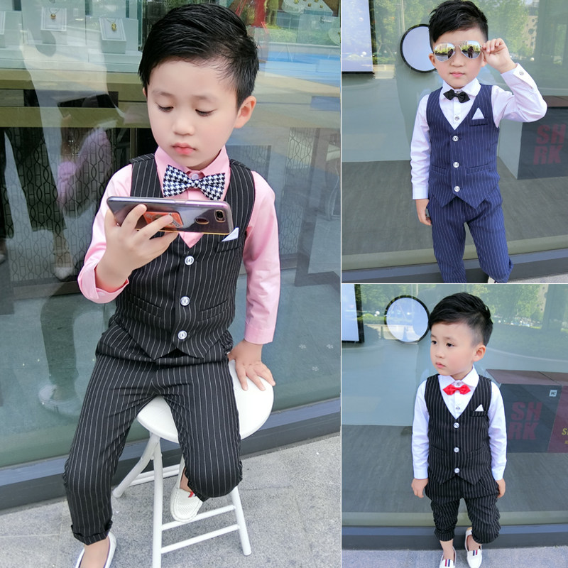 Осенний лонгслив для мальчиков, платье, жилет, костюм, комплект, коллекция 2023, в британском стиле, стиль, 3 предмета
