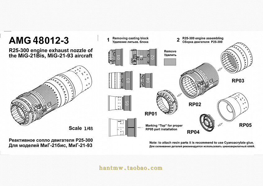 АМГ-48012-3 Истребитель МиГ-21/МиГ-21бис/21-93 1./48 собранная модель смола Выхлопное сопло 1/48 МиГ-21бис/21-93 Выхлопное сопло Р25-300