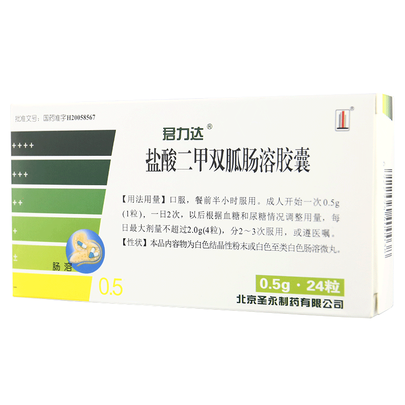Junlida Junlida Метформин гидрохлорид, капсулы с кишечнорастворимой оболочкой, 0,5 г * 24 капсулы в коробке, CF