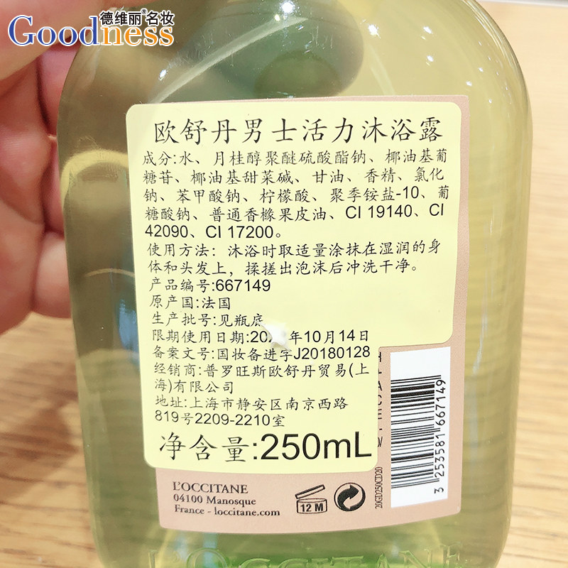 L'occitane, освежающий гель для душа, контроль жирного блеска, 250 мл