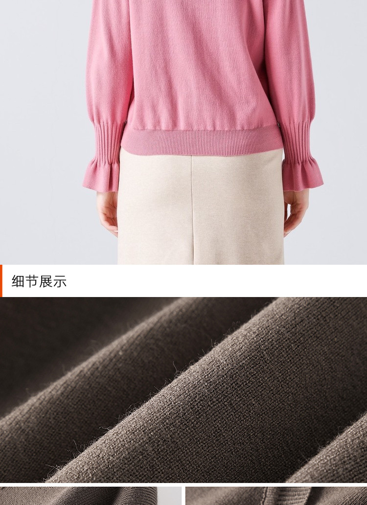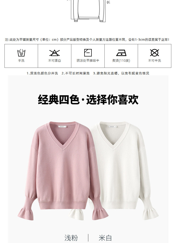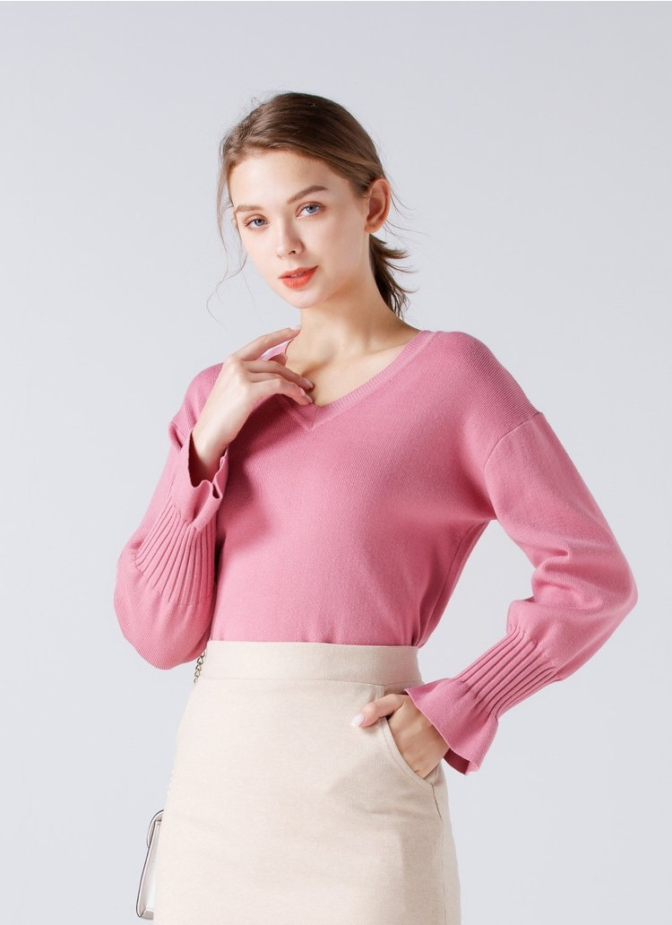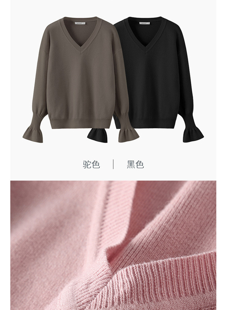 艾米恋 Мегафон, трикотажный осенний базовый розовый черный свитер, V-образный вырез, свободный крой