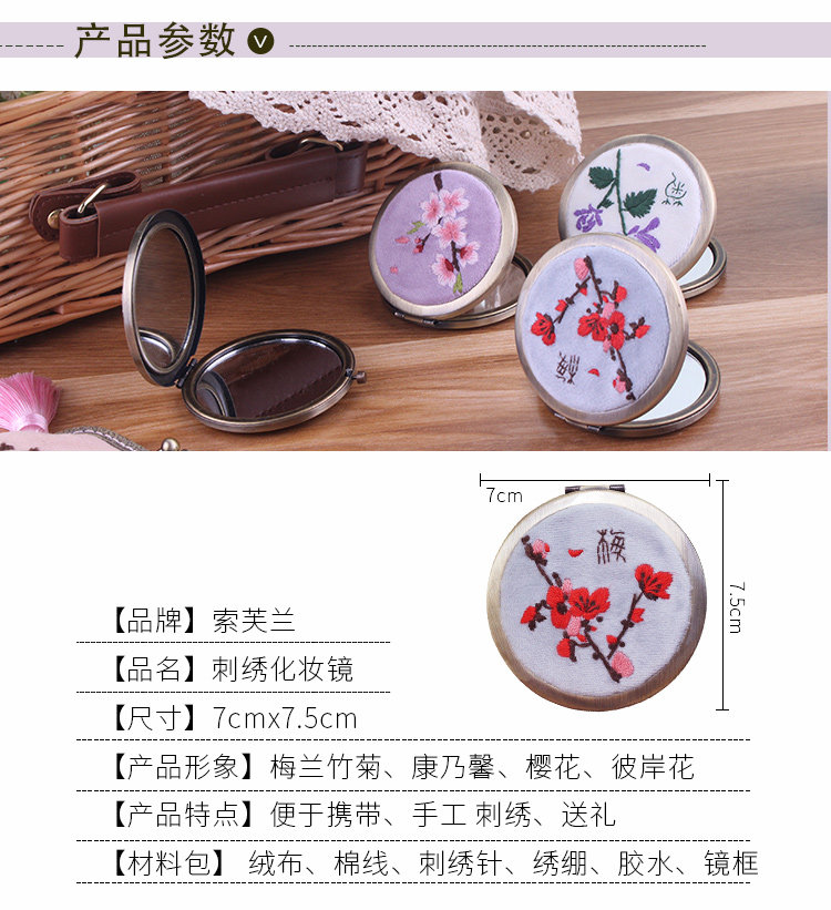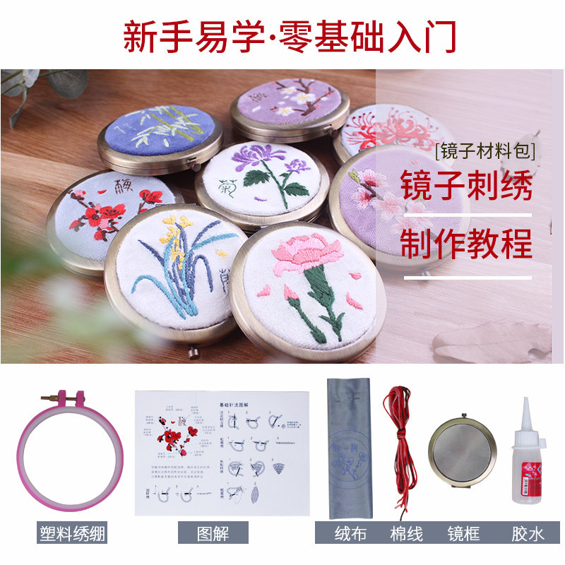 TikTok, складное двусторонное зеркало, набор материалов, DIY, подарок на день рождения, с вышивкой, 3D
