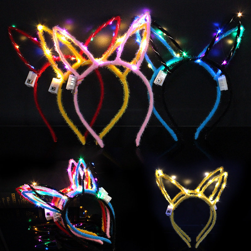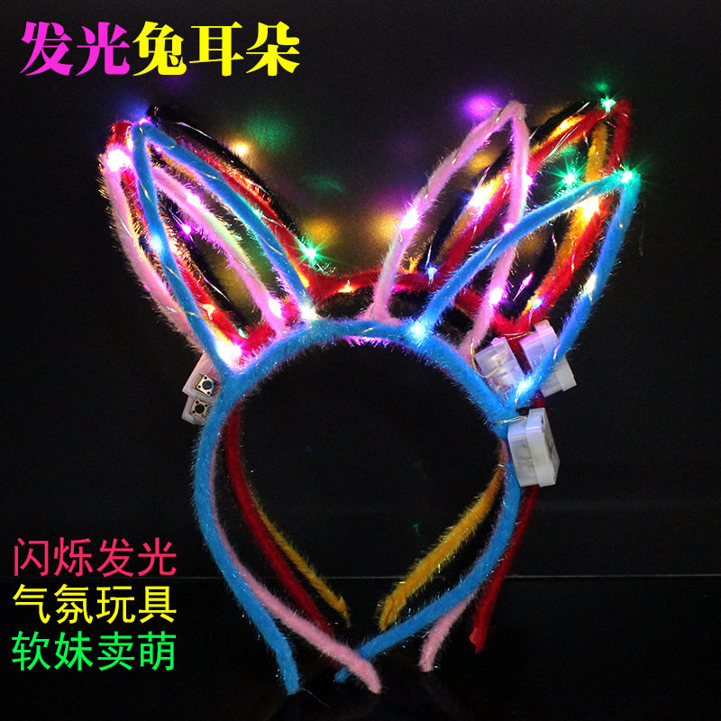 Новинка 2018 года, светящаяся повязка на голову с кроличьими ушками, блестящие заколки для волос, гирлянда, головные уборы, уличный ларек, ночная рыночная площадь, Лидер продаж