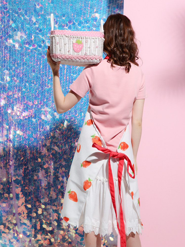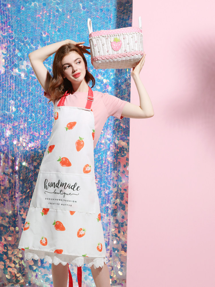 Оригинальная дизайнерская милая клубника, свежий водонепроницаемый фартук, из хлопка и льна, для влюбленных