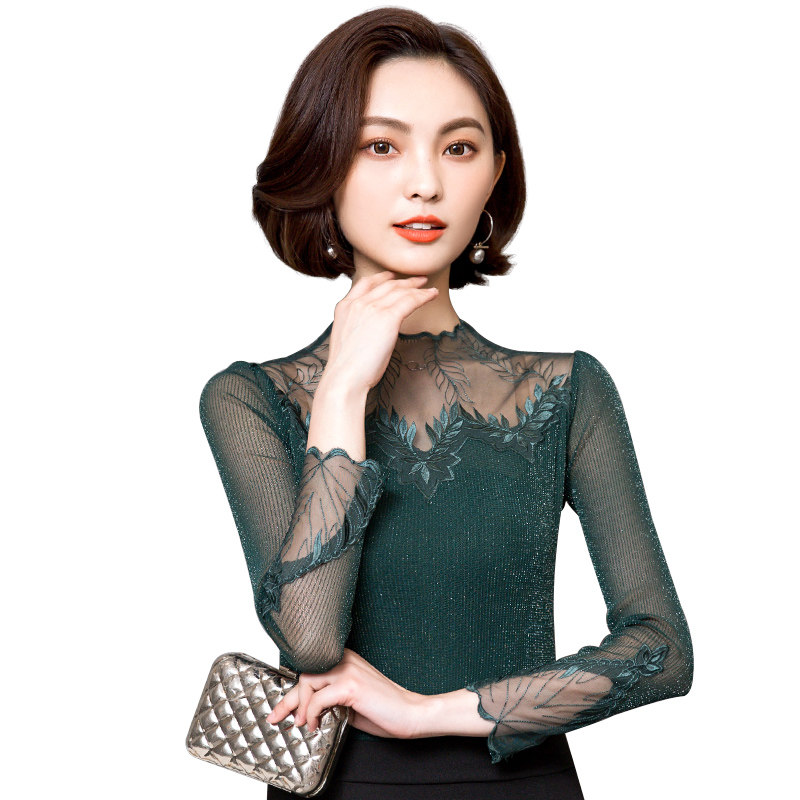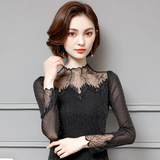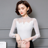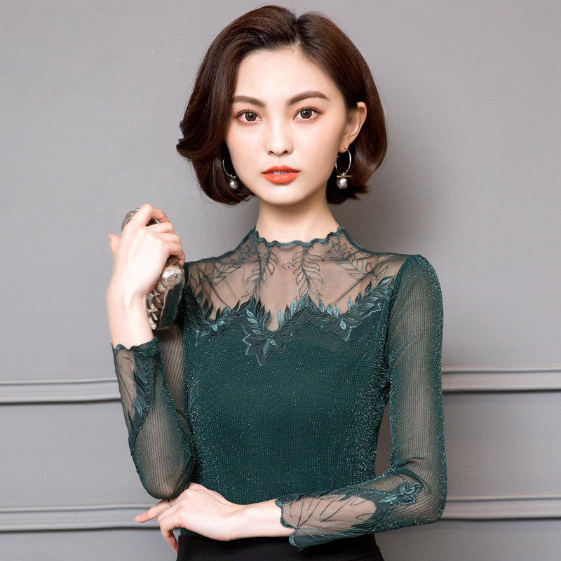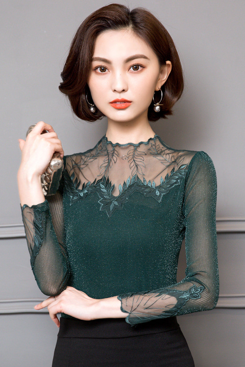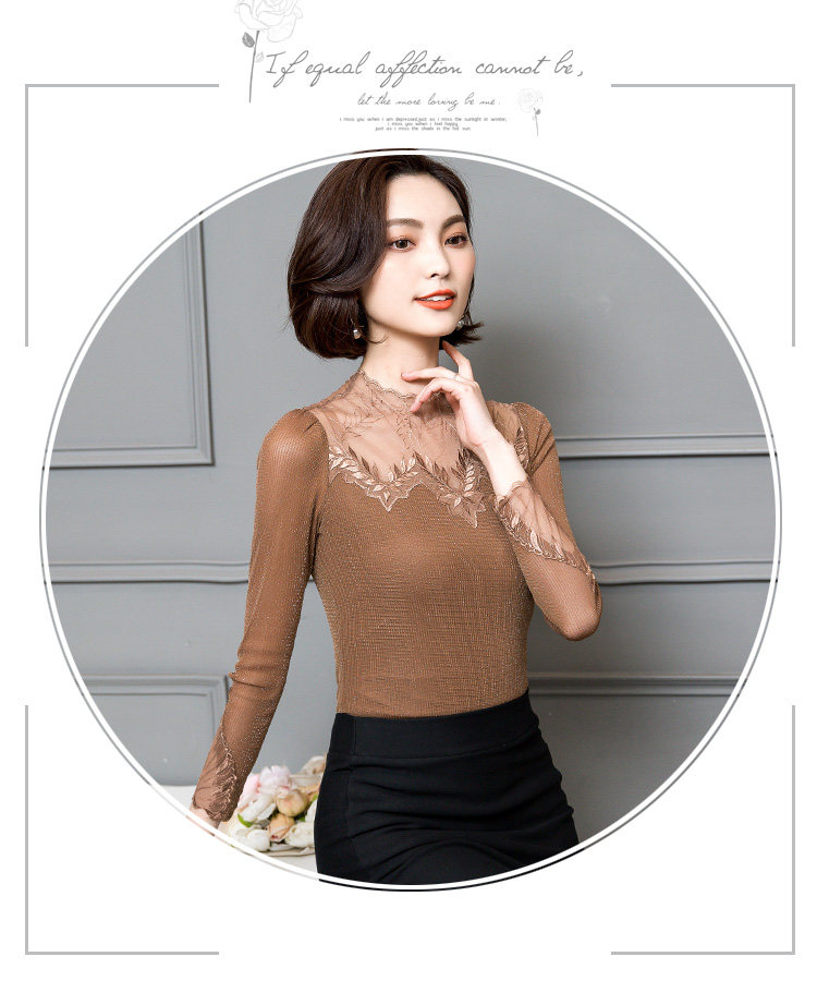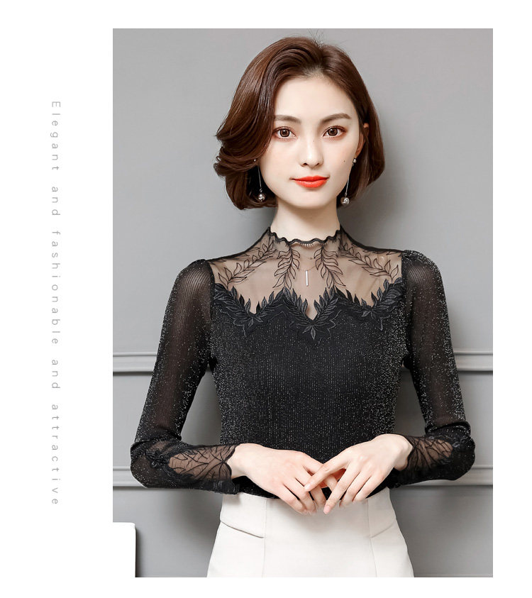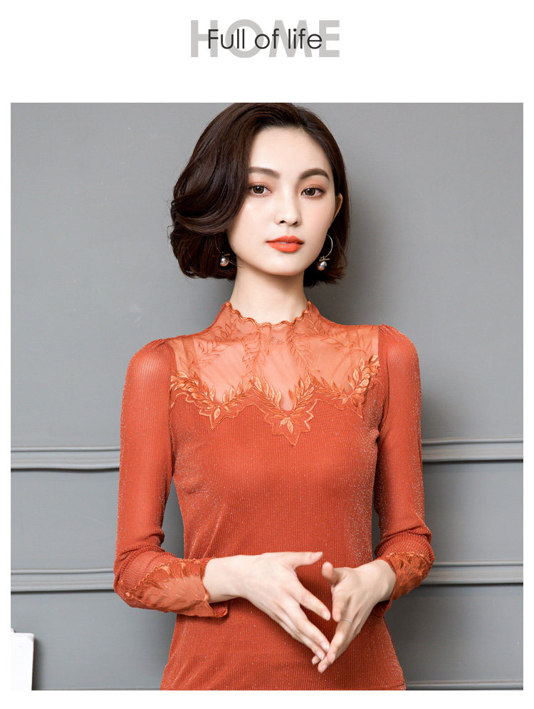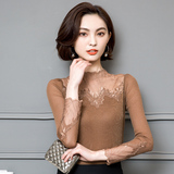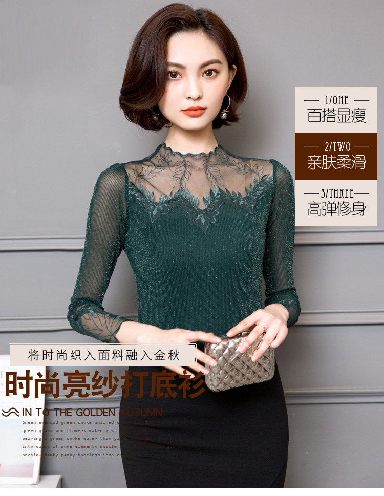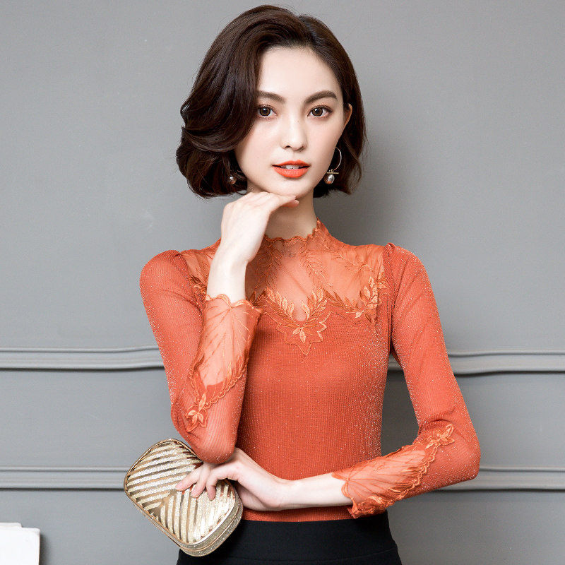 Кружевной шелковый приятный телу осенний тонкий лонгслив, облегающий крой, в западном стиле
