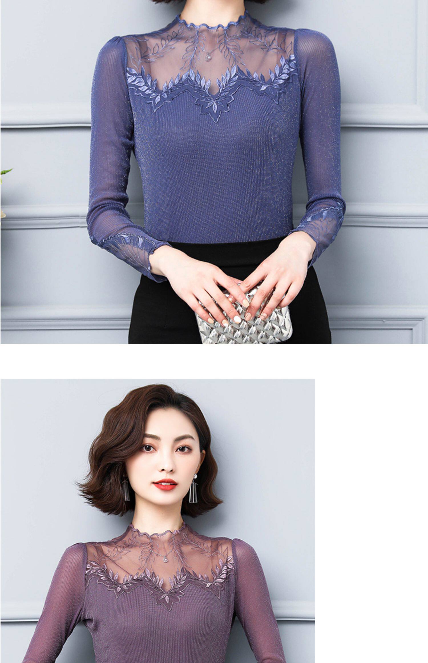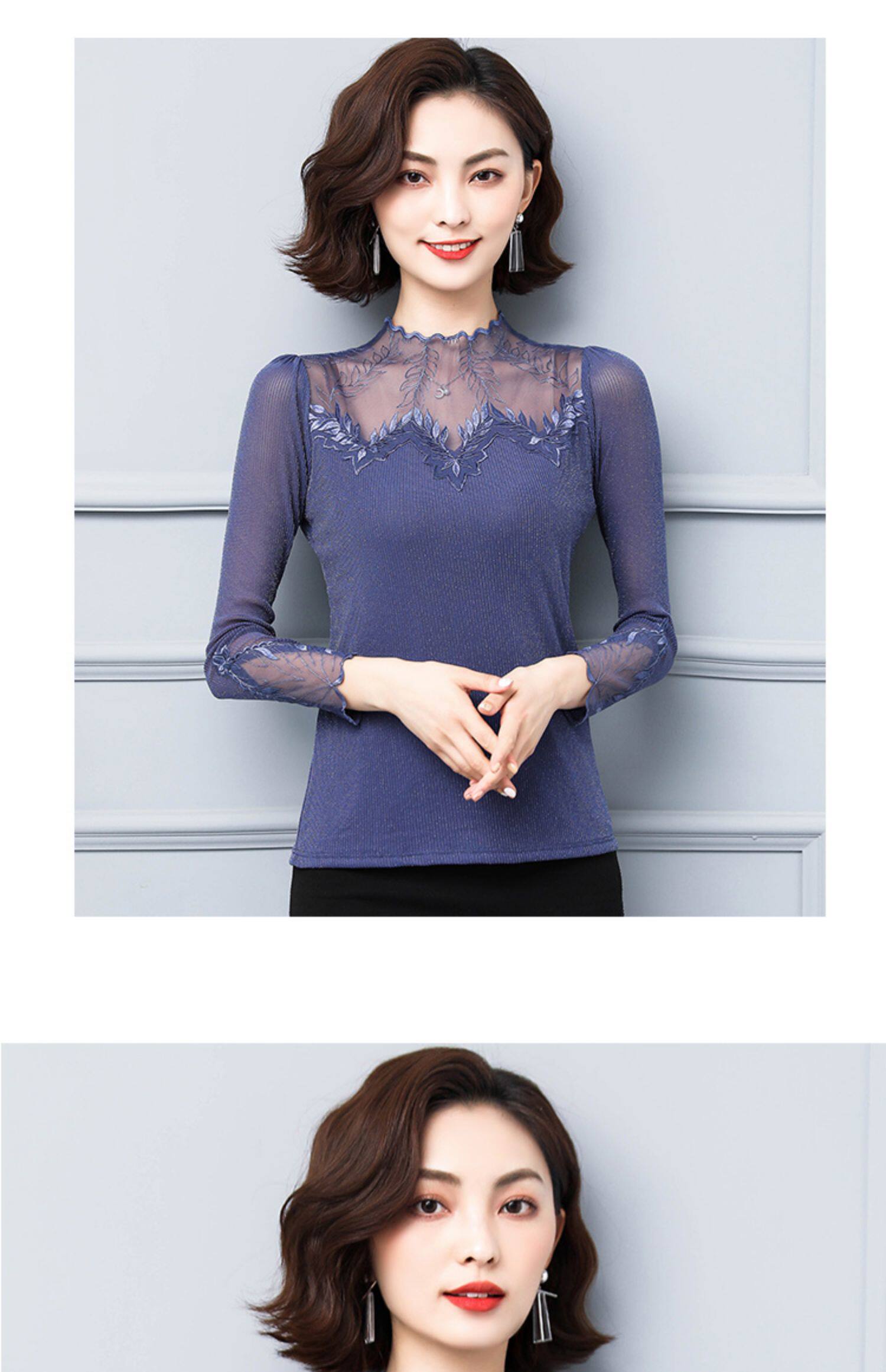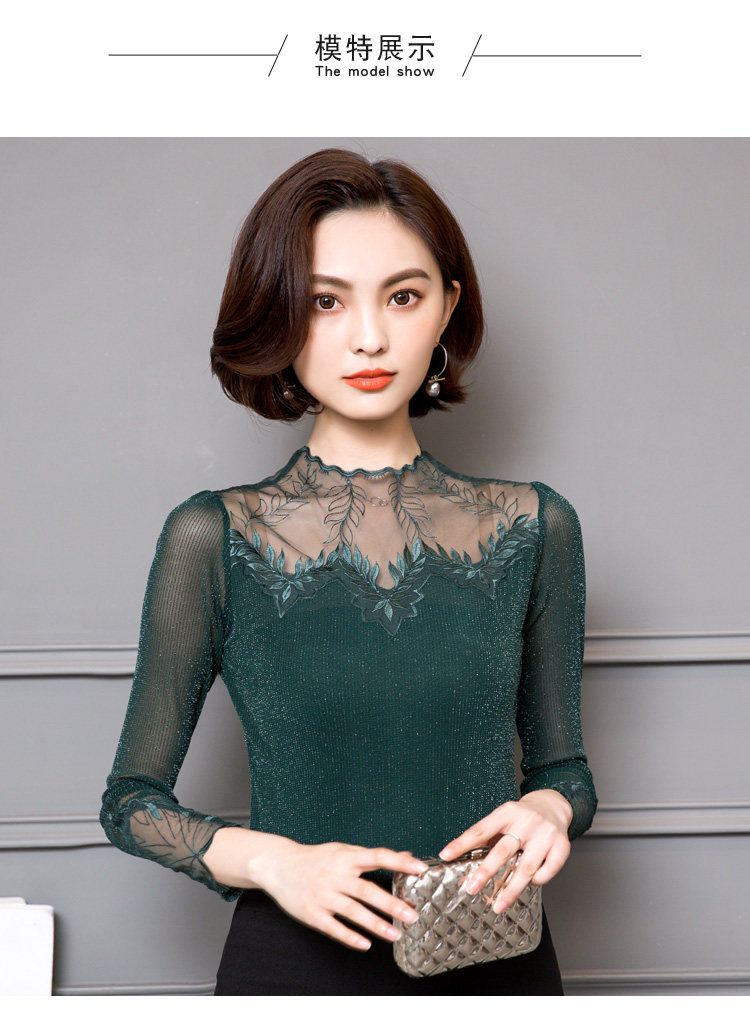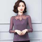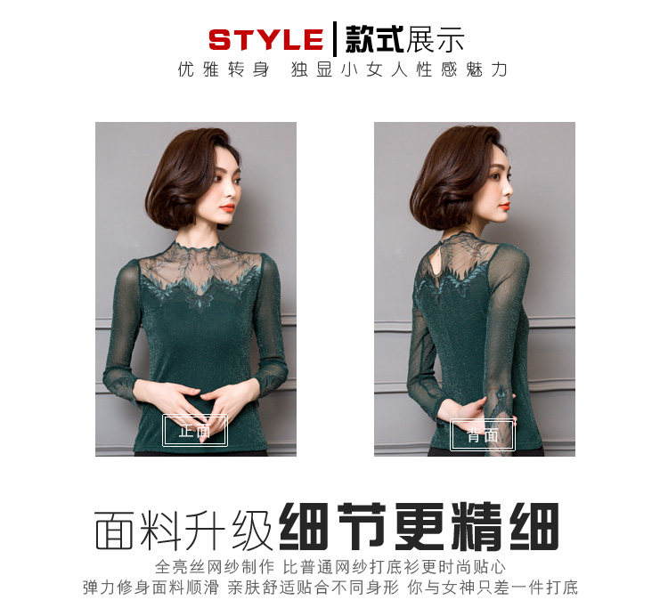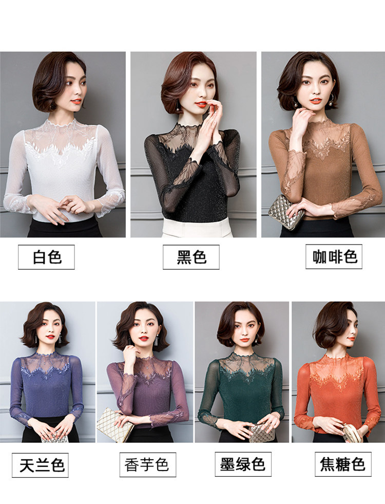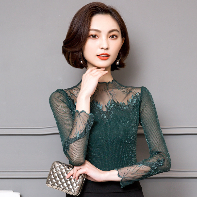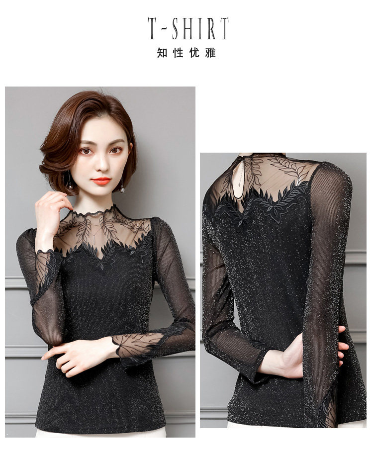 Кружевной шелковый приятный телу осенний тонкий лонгслив, облегающий крой, в западном стиле