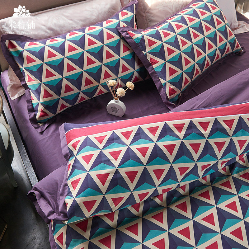 Хлопковый геометричный комплект, хлопковое покрывало, пододеяльник, простыня, в американском стиле, 4 предмета, постельные принадлежности, 1.8м, 1.5м