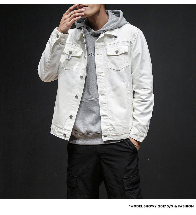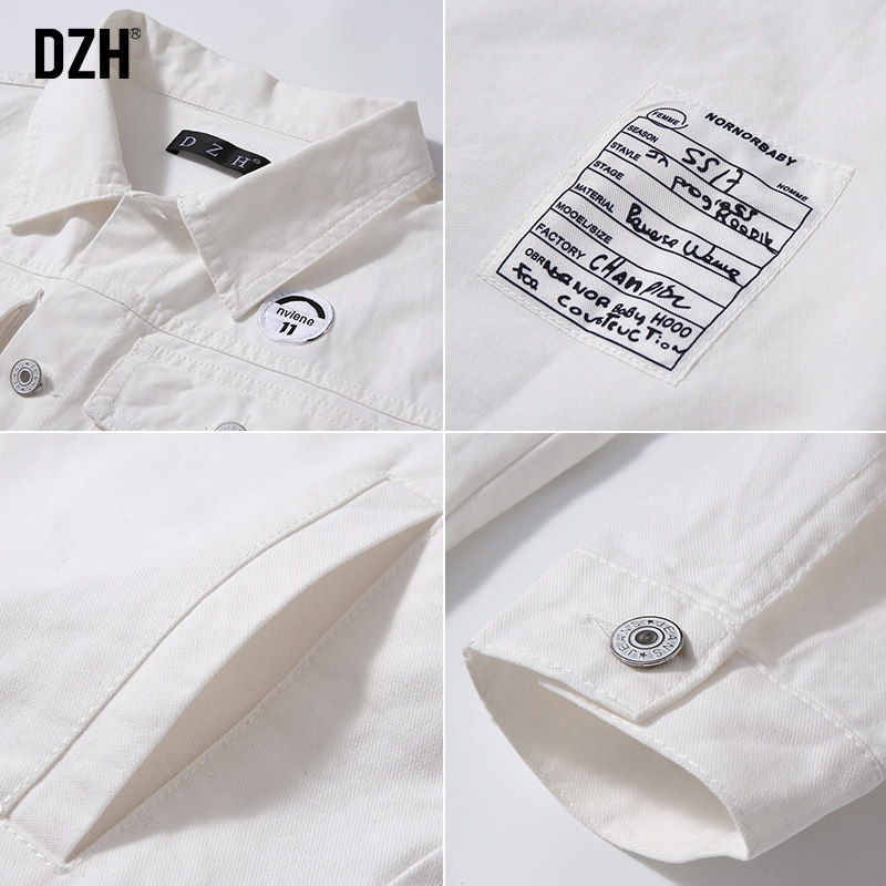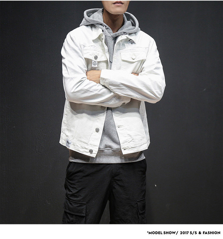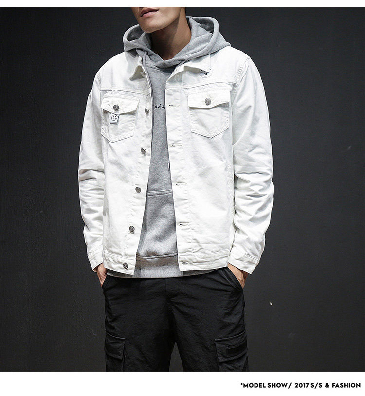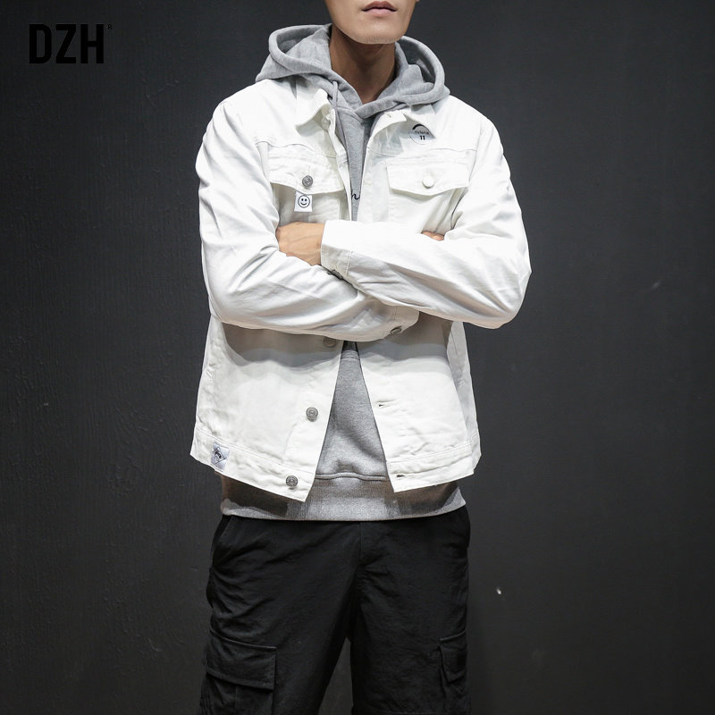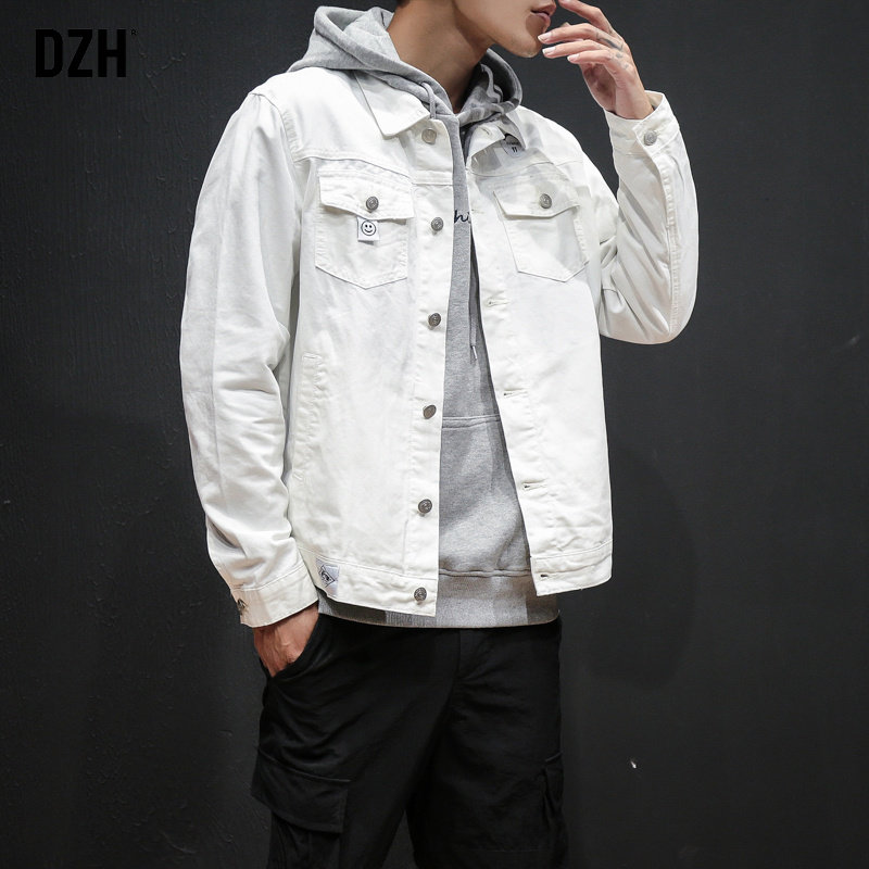 Белая джинсовая мужская трендовая куртка, осенняя, коллекция 2021