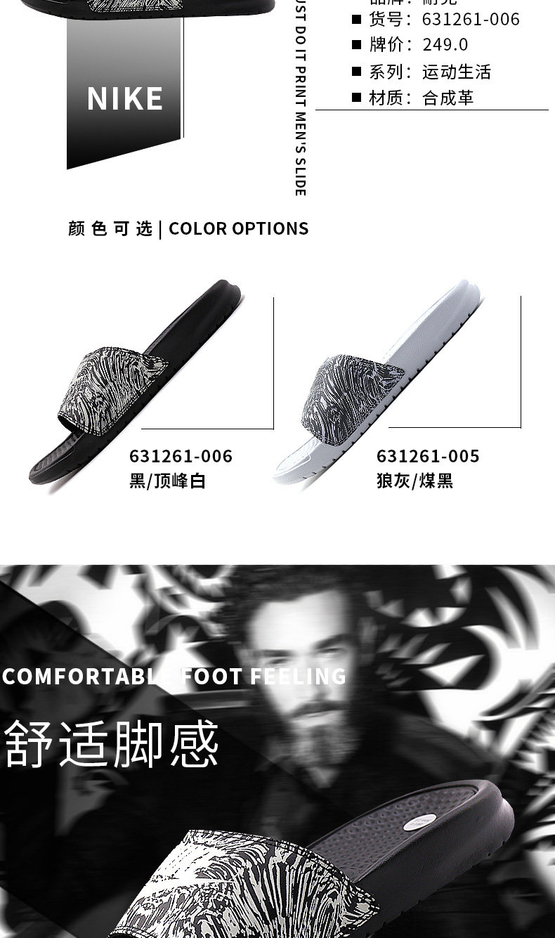 Nike Men's Slippers 2018 Летние брызги сплески чернила и повседневные песчаные тапочки 631261-005-006-009