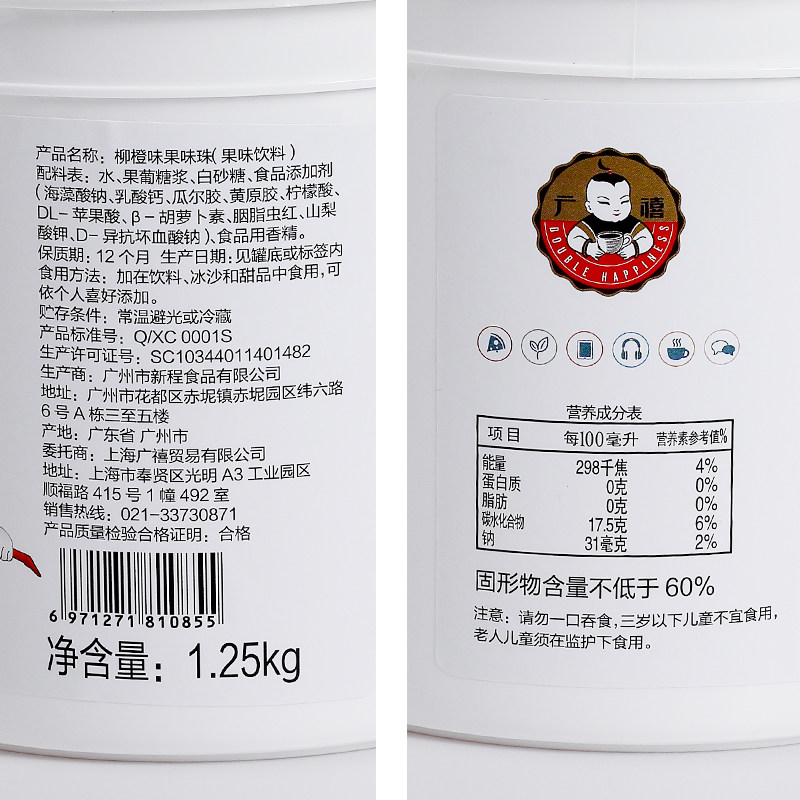 Гуанси Апельсиновый хлопчатый жемчуг 2,5 кг Взбитые яйца со вкусом манго и клубники Жемчуг Кокосовое молоко Магазин чая Специальные ингредиенты