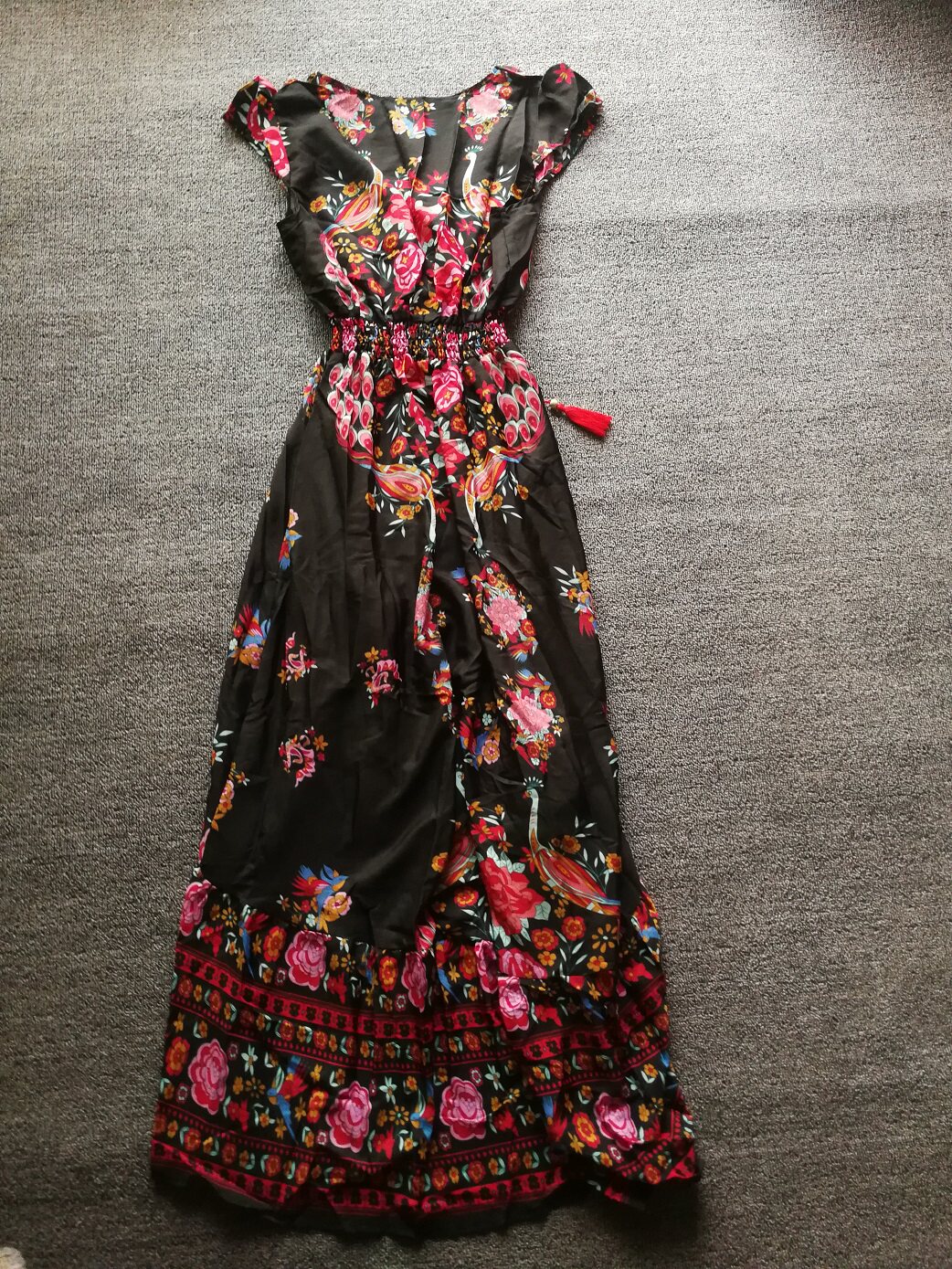 Этническая длинная юбка, платье, стиль бохо, этнический стиль, V-образный вырез, ассиметричный крой
