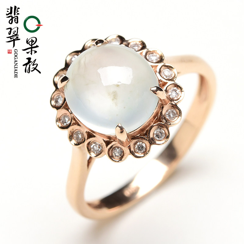 Изумрудное кольцо с камнем из нефрита, инкрустация камня, имитация льда, золото 750 пробы