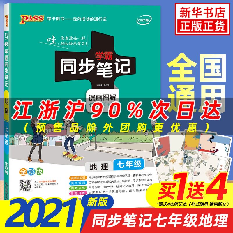 2021 Edition Xueba Synchronous Notes Географические седьмой седьмой класс 7 Общая версия Полная версия Pass Green Card 7 -й класс для обучения средней школы и вспомогательных упражнений Синхронные учебные материалы Объяснение комиксы в сочетании с Синьхуа подлинным