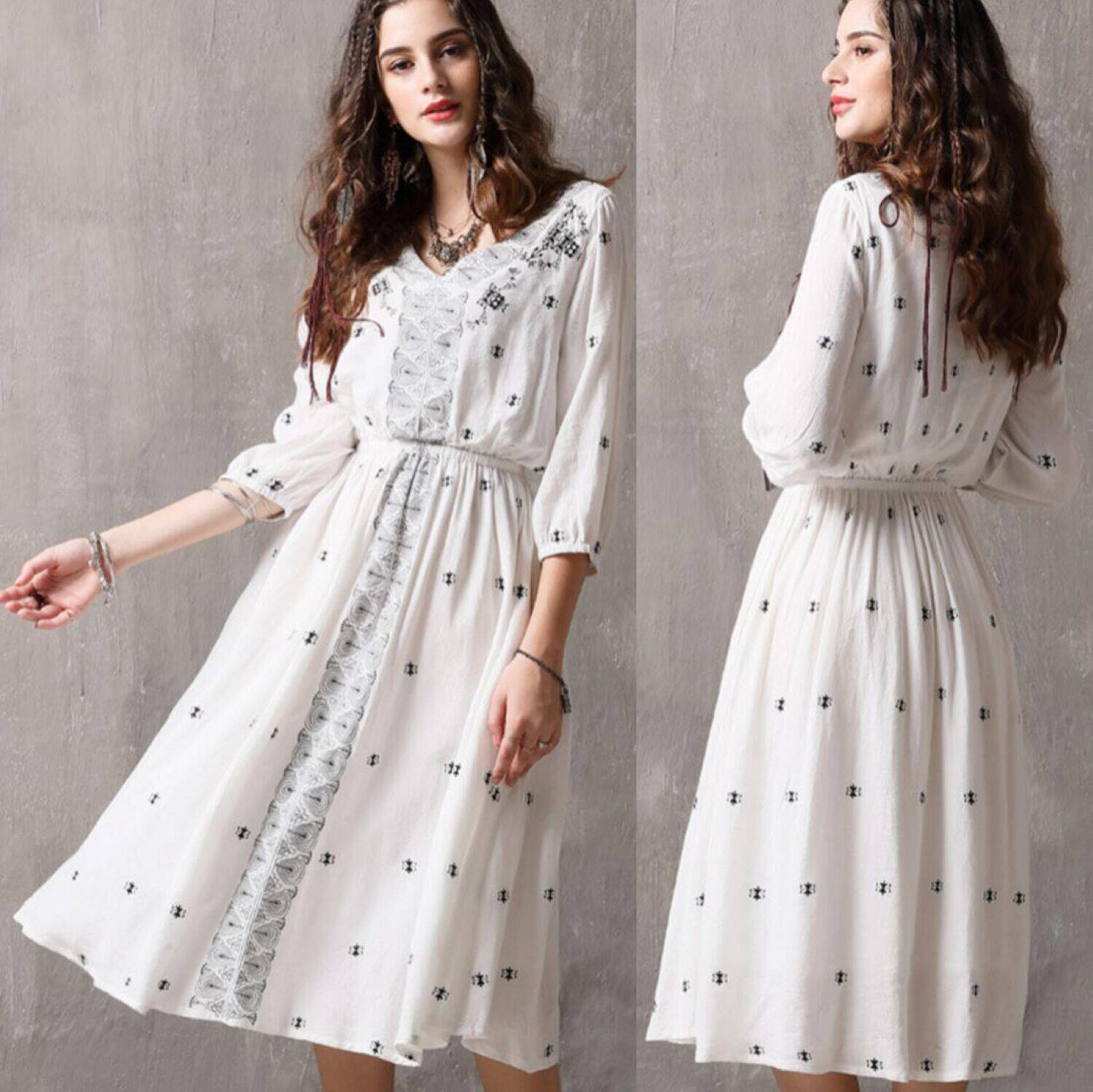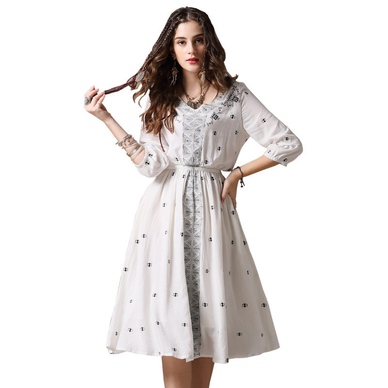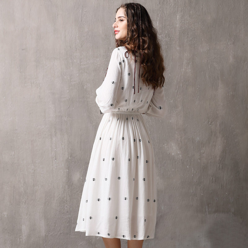 Летнее ретро платье, из хлопка и льна, с вышивкой, свободный крой, яркий броский стиль