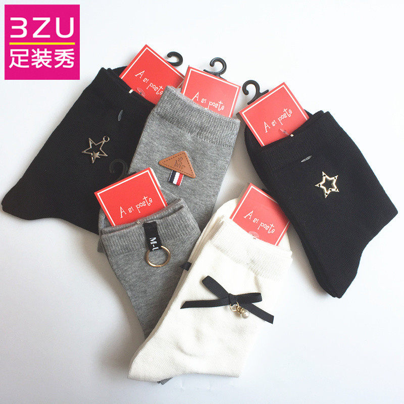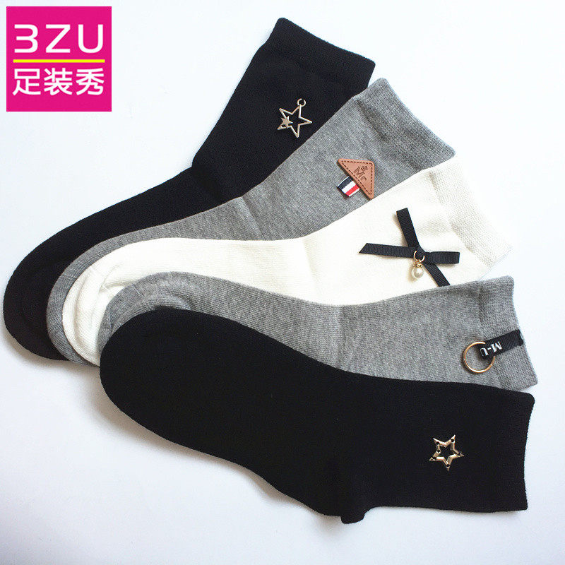 Показ обуви 3ZU: купи один, получи один бесплатно, весенние и осенние хлопковые декоративные женские носки в китайском стиле A38W4601