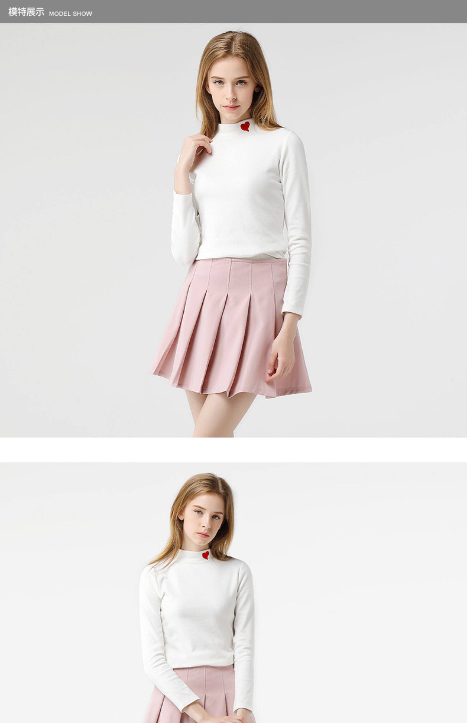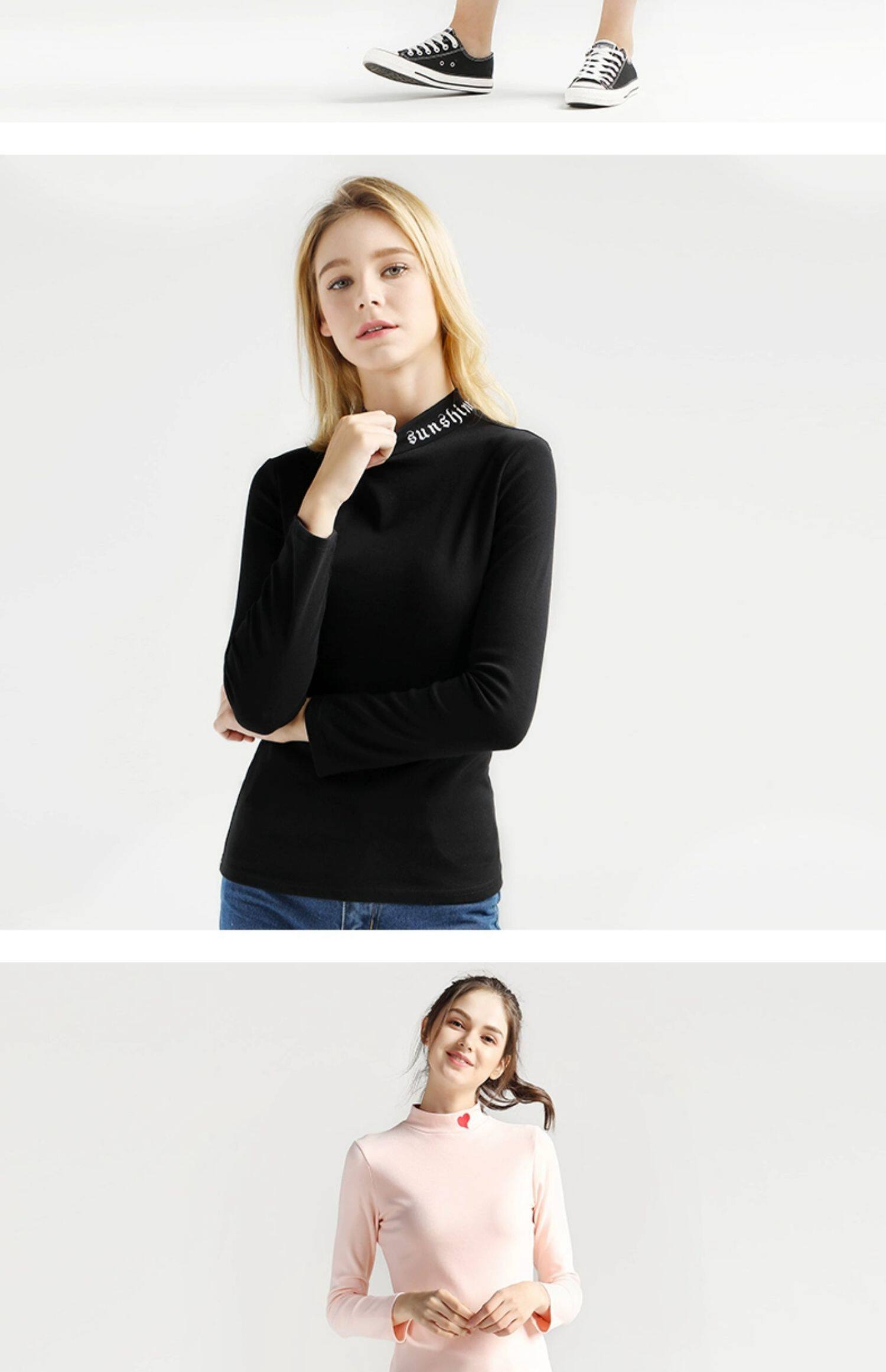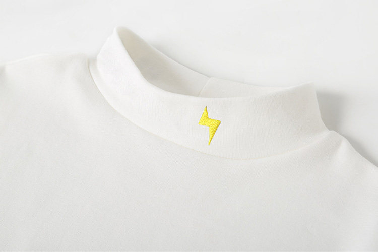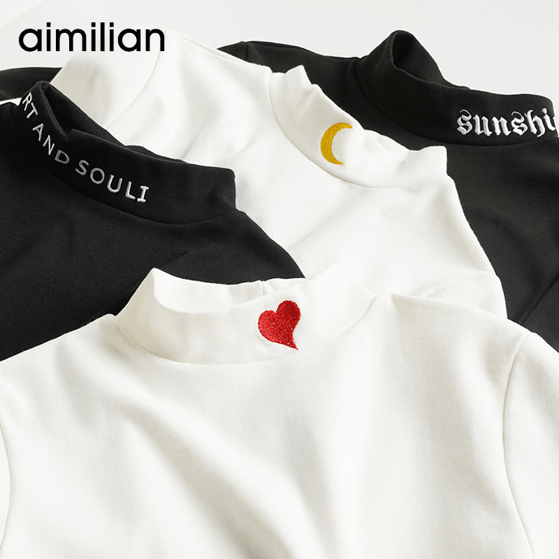 艾米恋 Хлопковый базовый приятный телу утепленный приталенный белый лонгслив, высокий воротник, с вышивкой