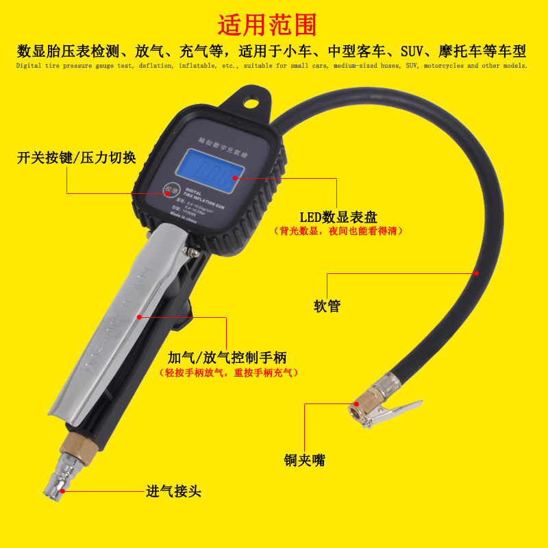 Цифровой дисплей ЖК -дисплей цифровой настройки шин, воздушный пистолет шин, автомобильный счетчик шин, измеритель давления в шинах, измеритель давления воздуха, измеритель давления воздуха