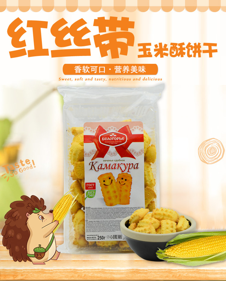 Российская импортная кукурузная сода бисквиты Bielogeye's Dutritional Breakfast Egg Yolk Cake 250G Сетка красные закуски