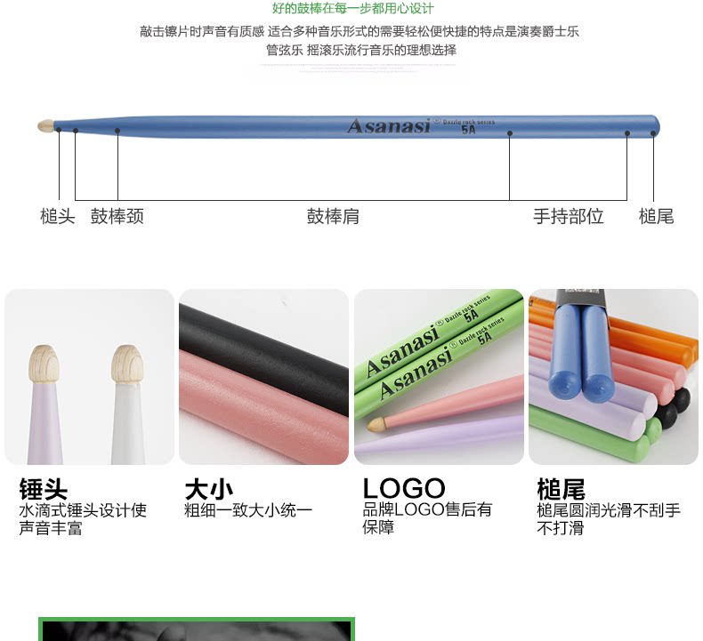 Асанаси шельфа окрашенная барабанная палка 5a 7a 7a маленький армейский барабан упражнение барабана барабана барабана барабана барабана барабана барабана барабан молоток барабан барабан барабан