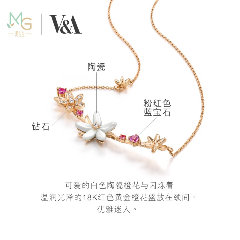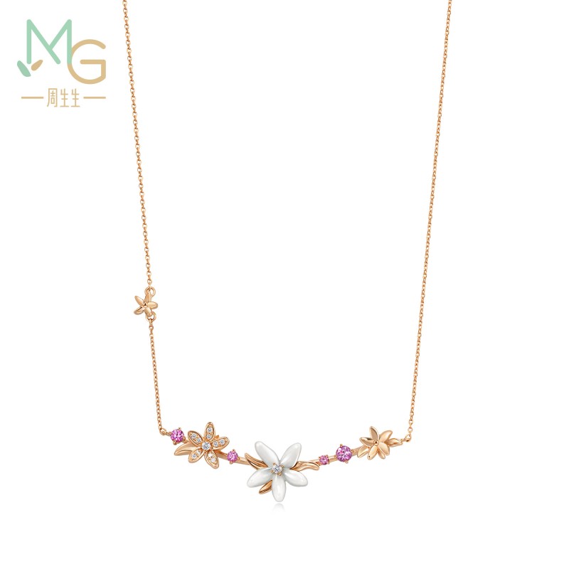 周生生 Бриллиантовая подвеска, ожерелье, золотая цепочка, 18 карат, розовое золото