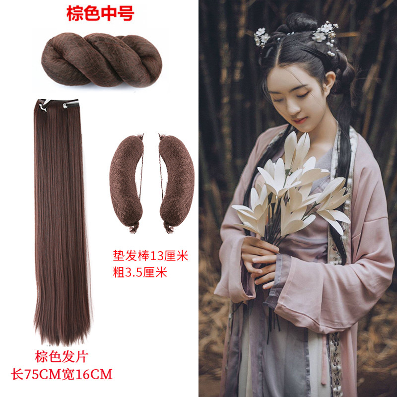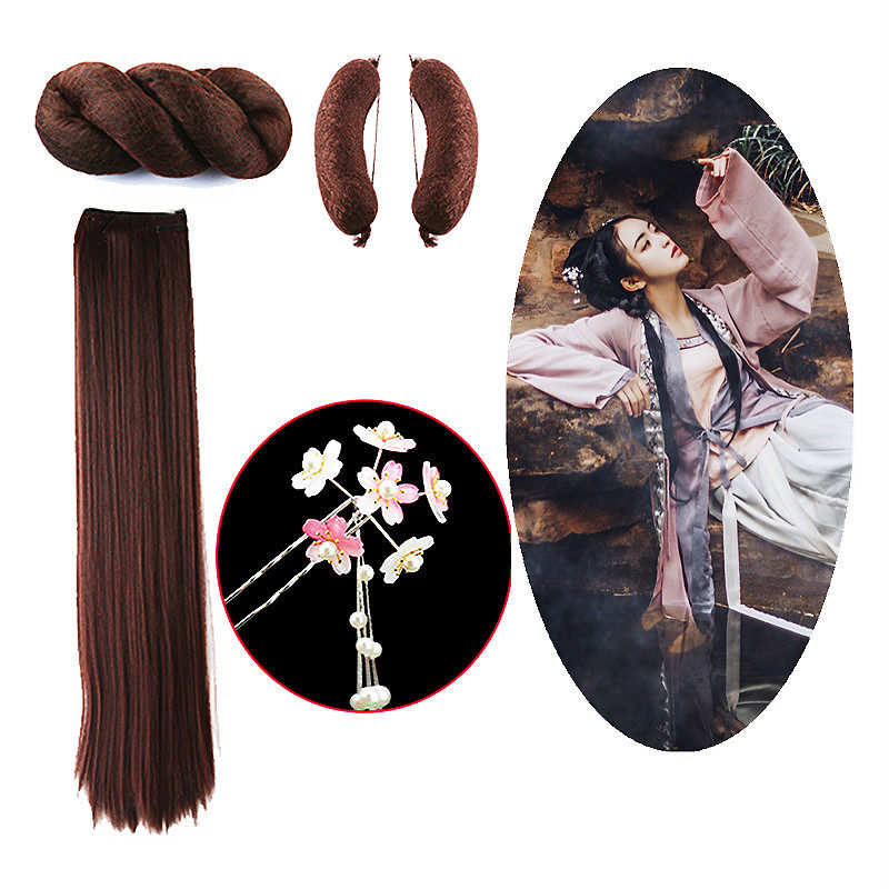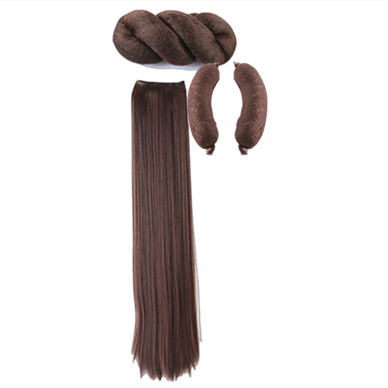 Коричневый парик, черная маленькая небольшая сумка с косичкой, аксессуар для волос