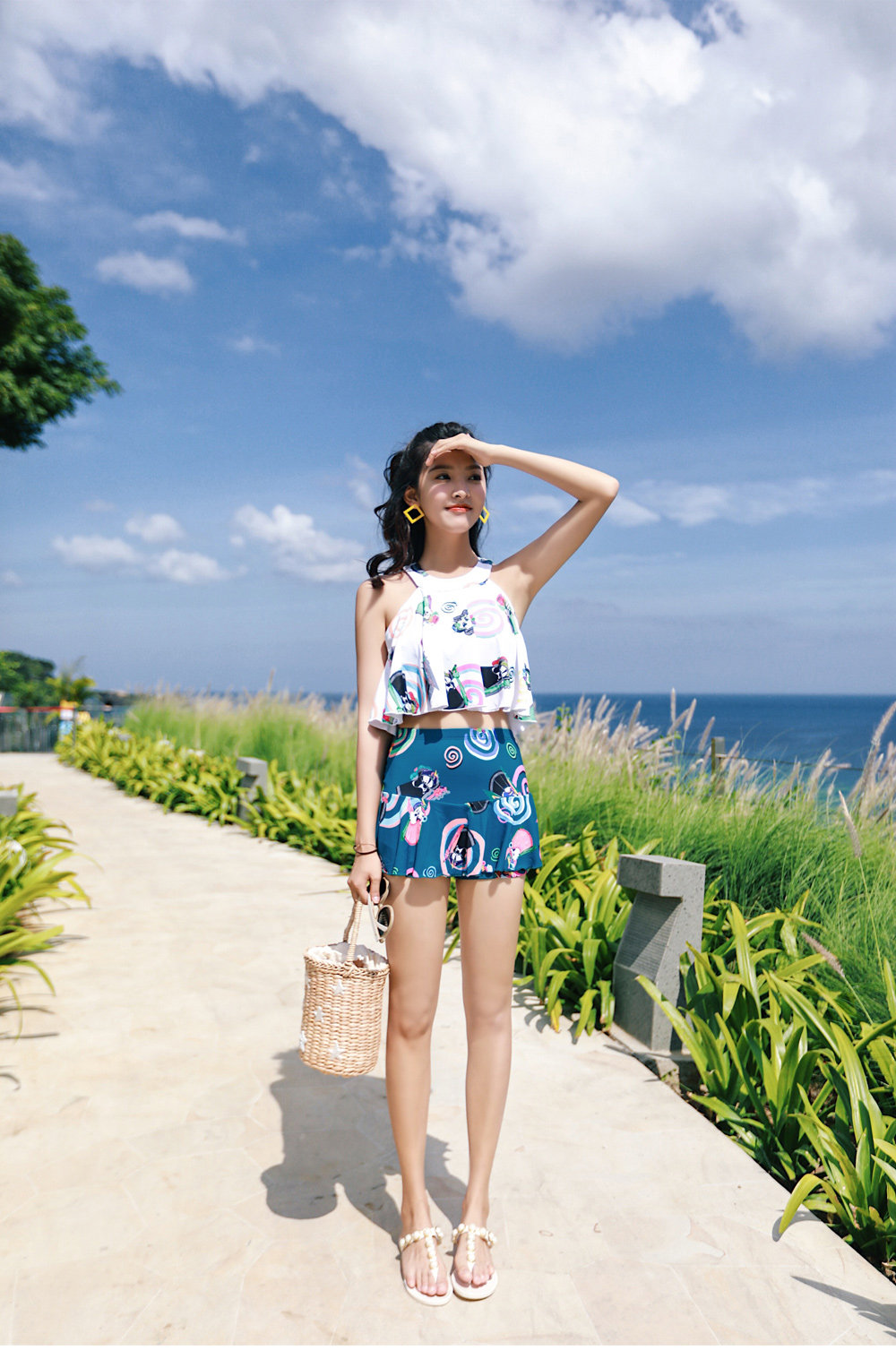 Купальник, раздельный пляжный комплект, в стиле Шанель, пляжный стиль, для влюбленных