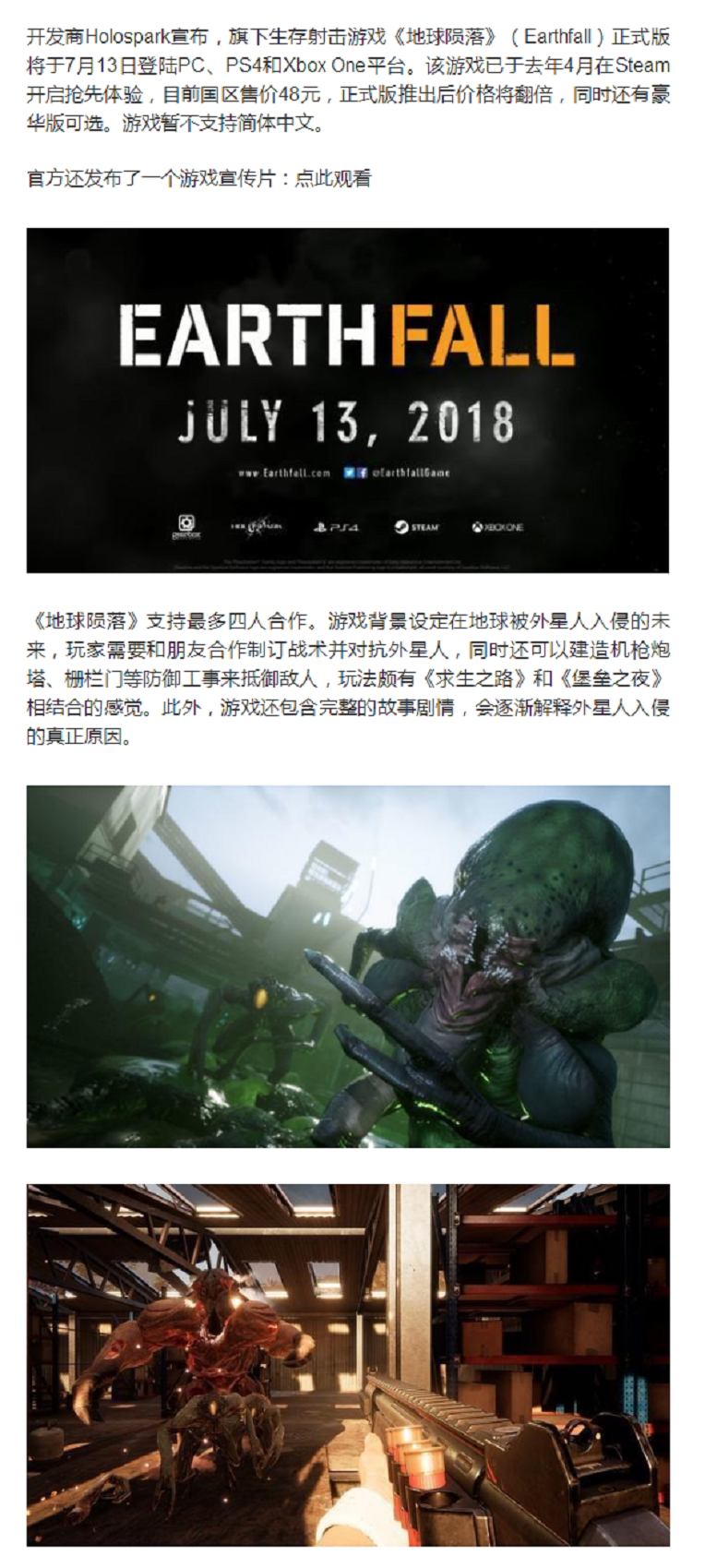 PS4 Game Game Earthfall Deluxe Edition китайское место