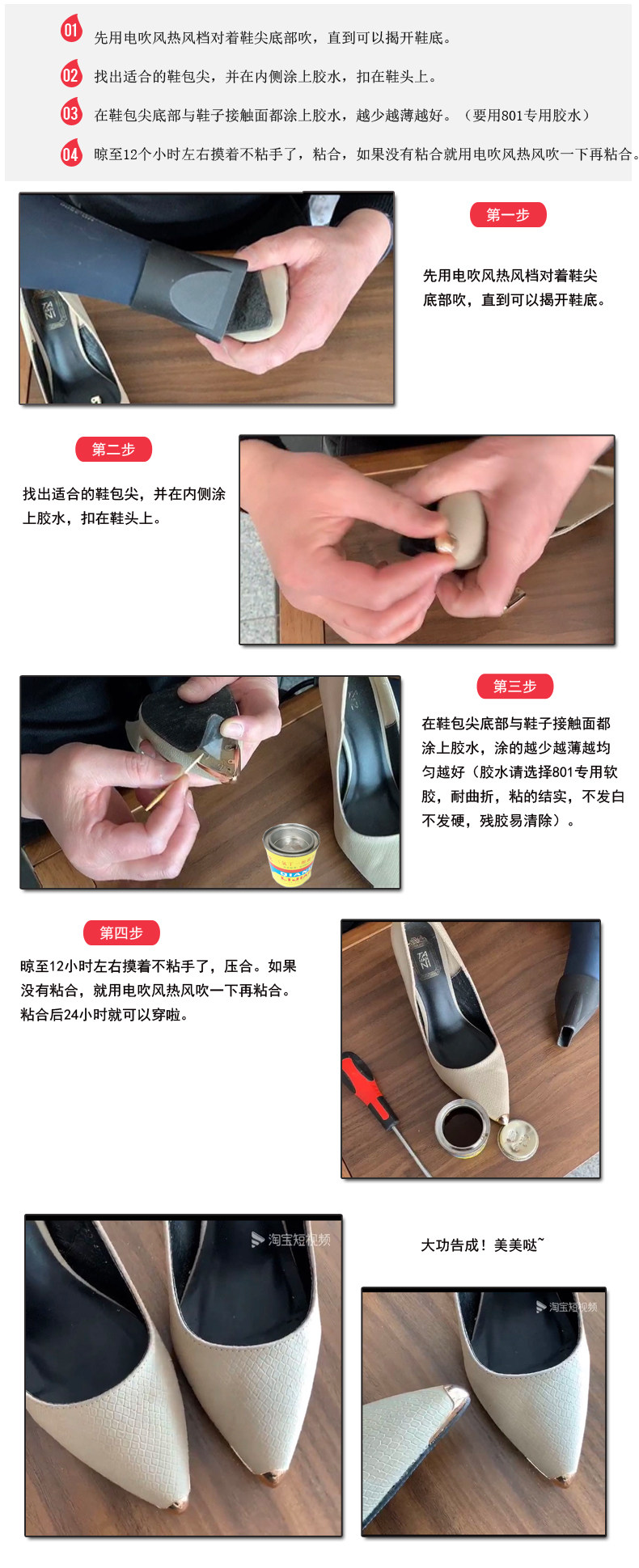 Напоминание: Поскольку клей - это липкий продукт, пожалуйста, будьте осторожны, чтобы не капать в верхнее или лицо лица.